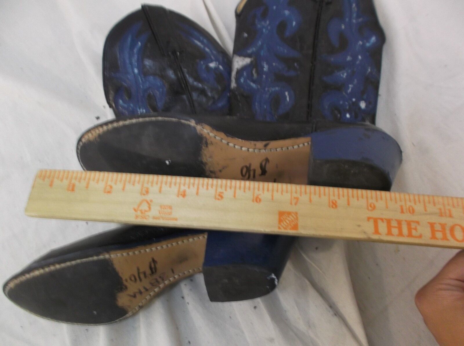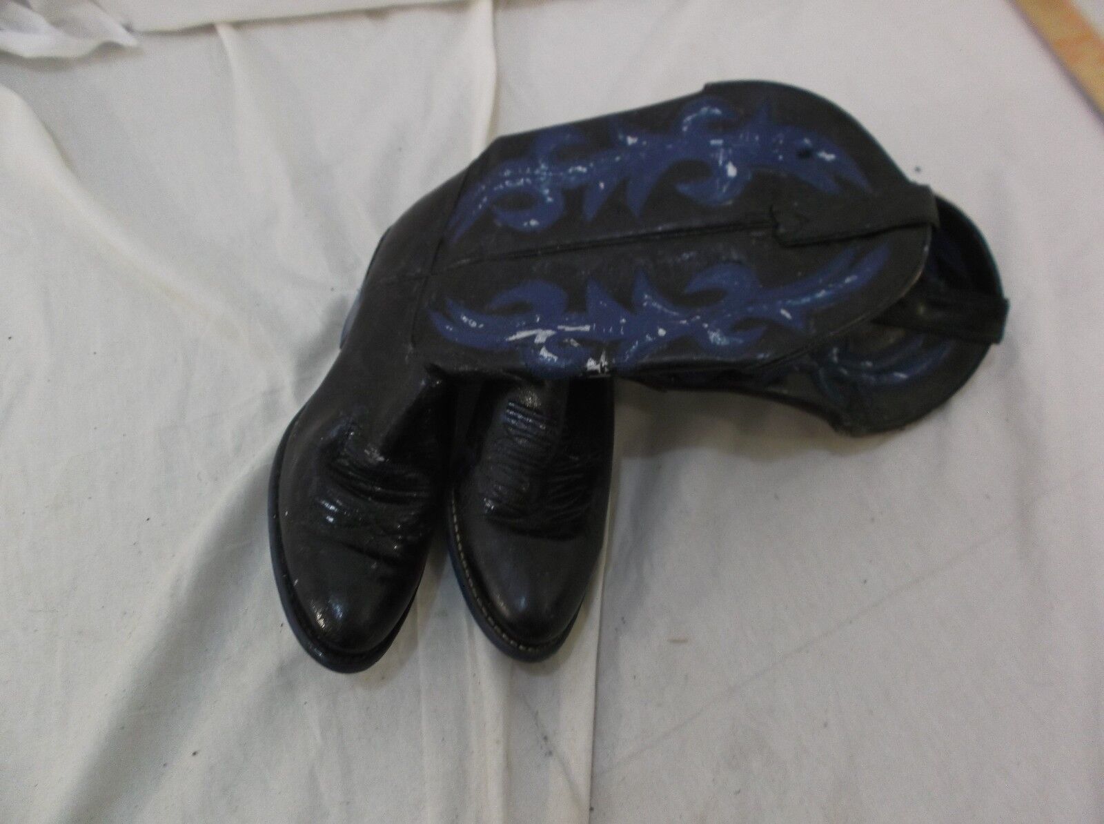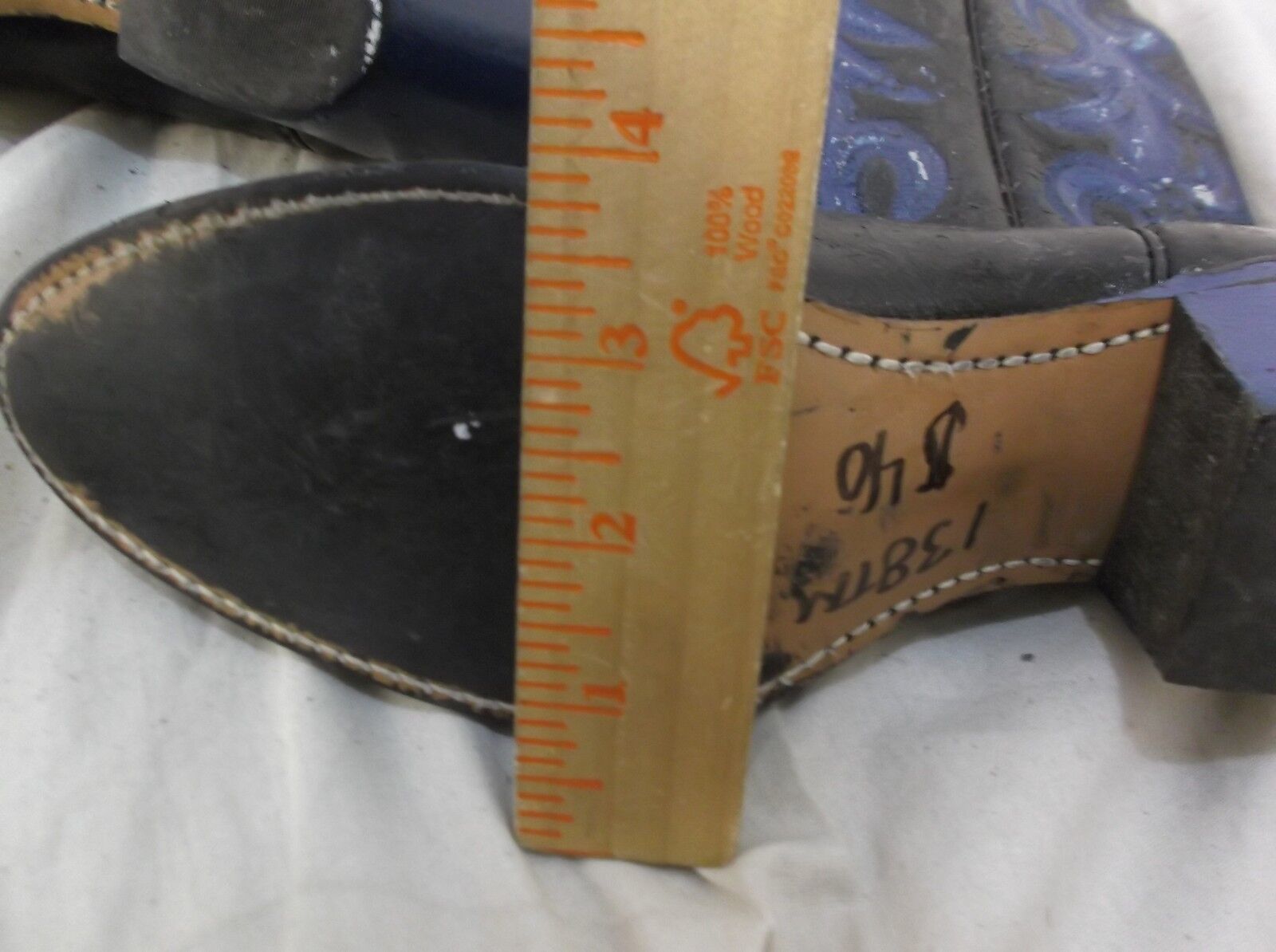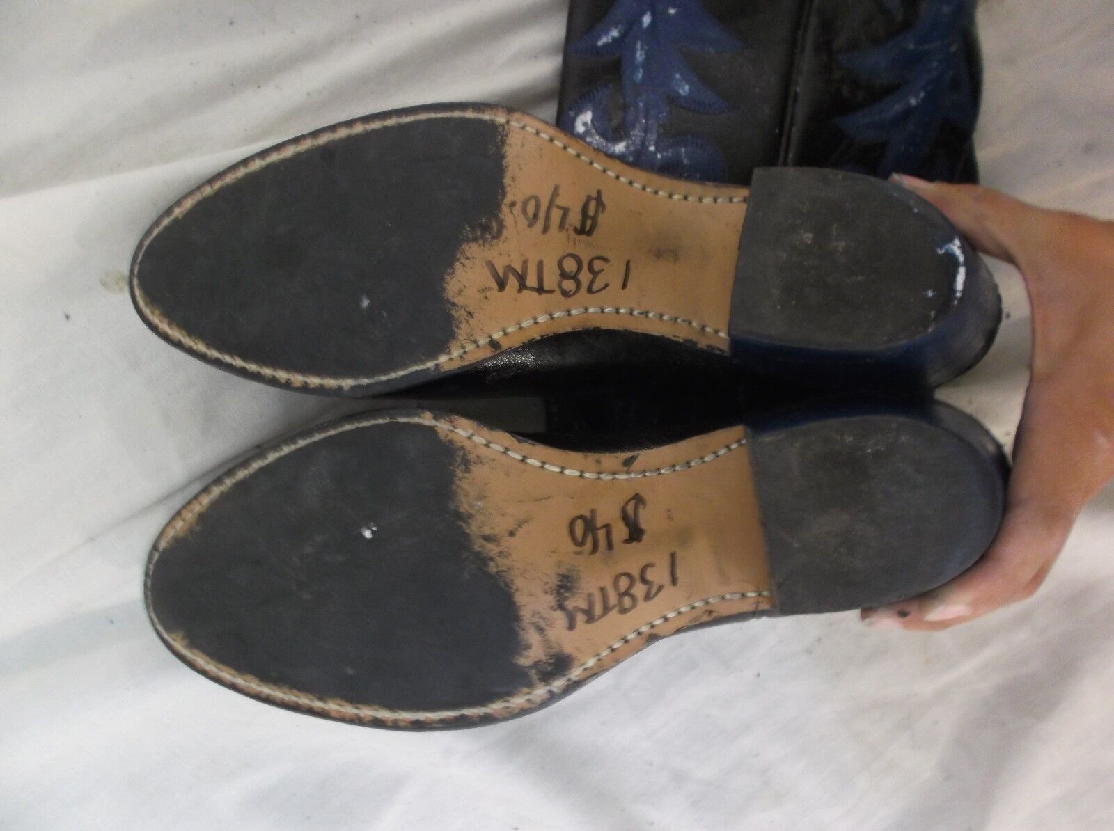 Defects: leather/ paint is cracking in areas Writing on soles Black blue coloring painted after purchase