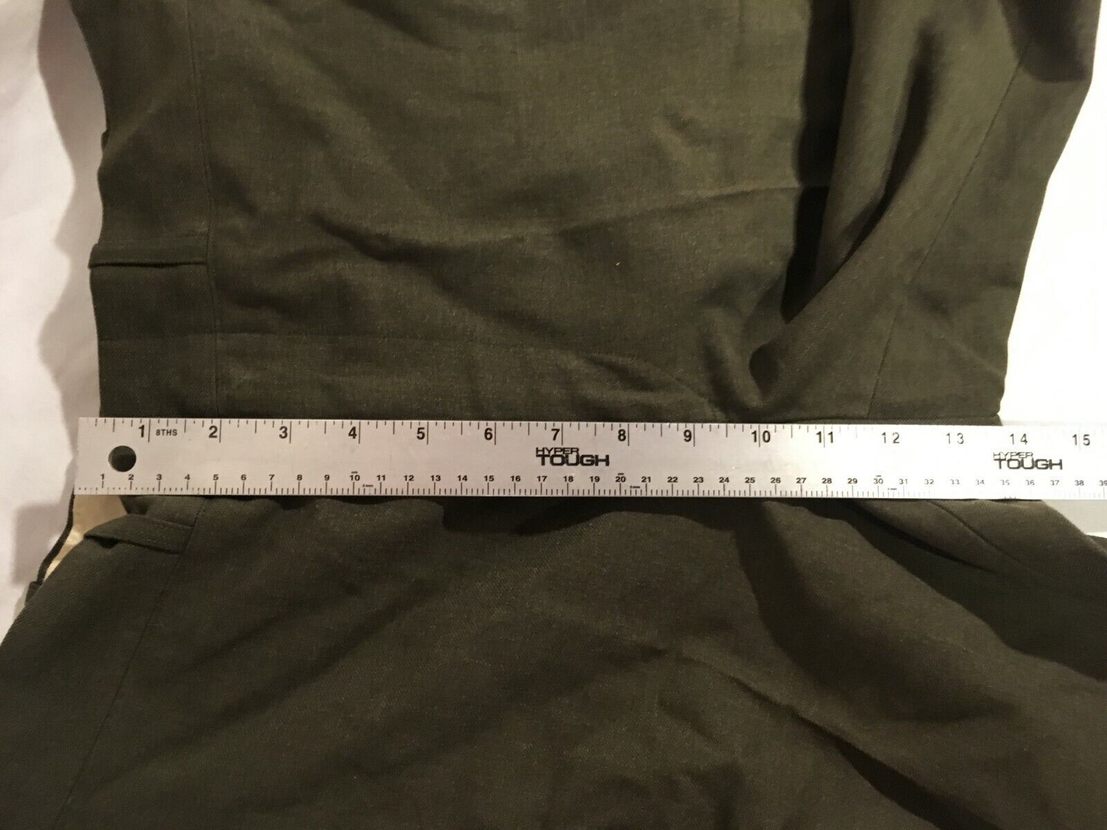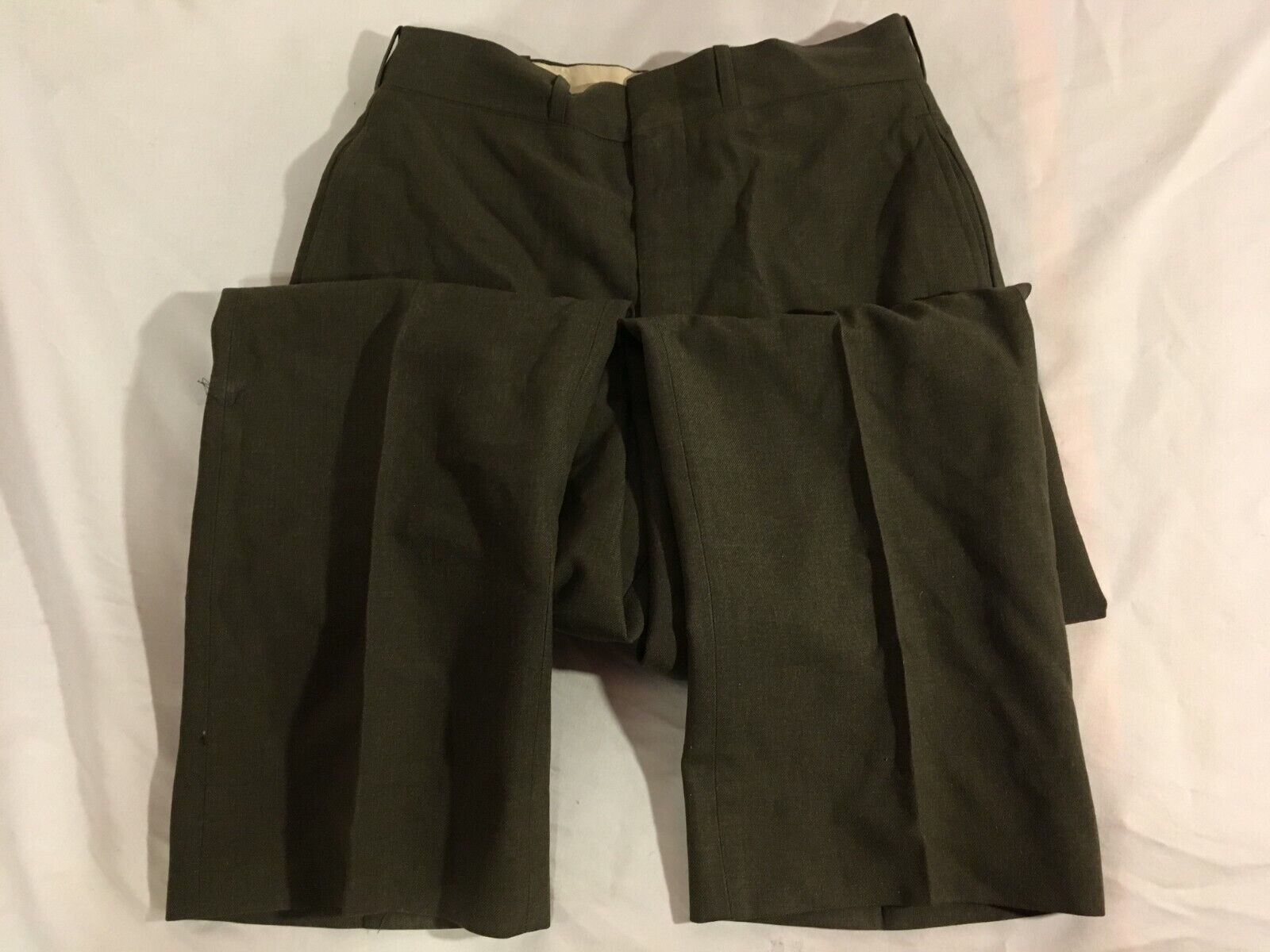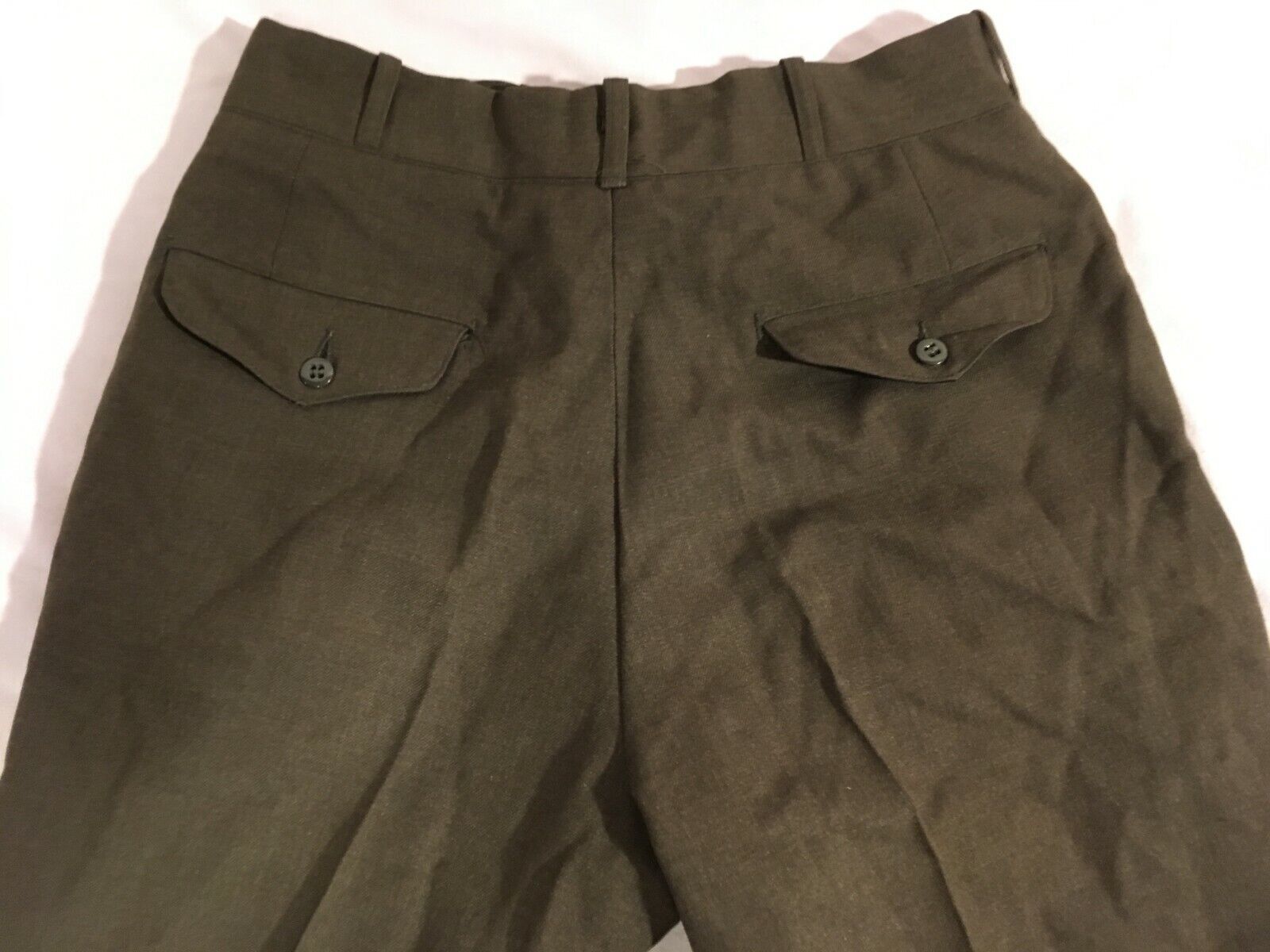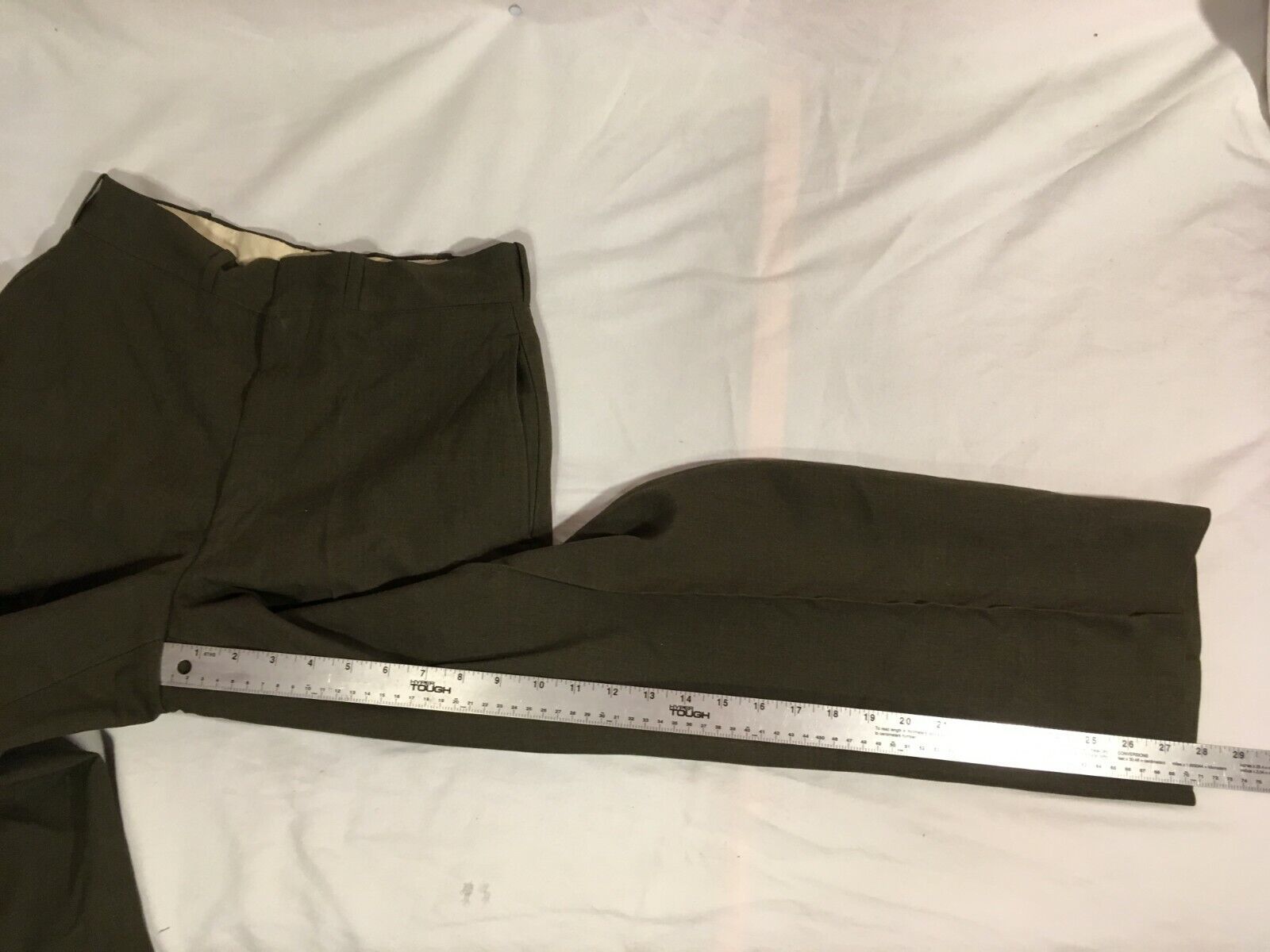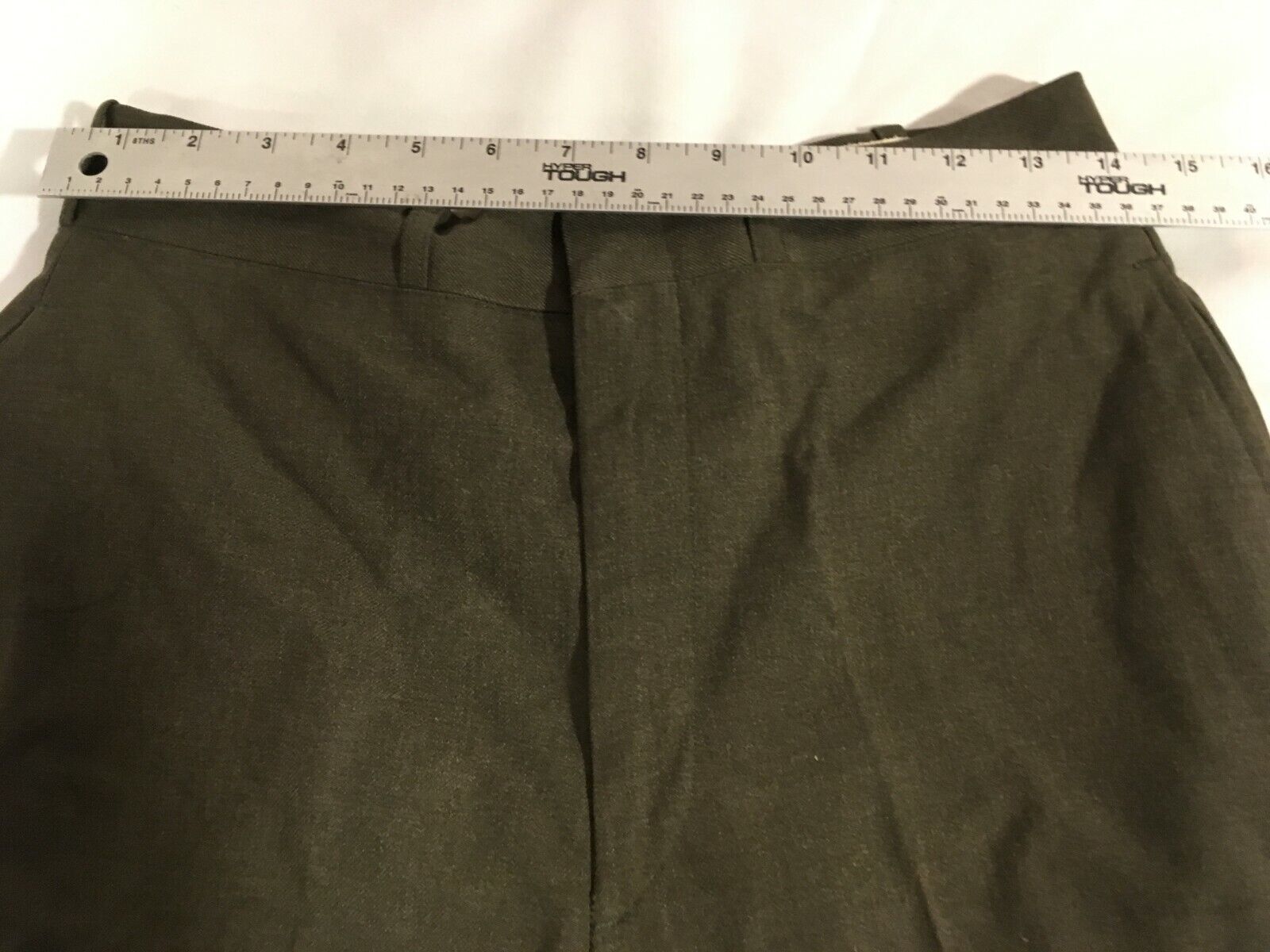 Our MILITARY PANTS are 100 percent Authentic MENS SERGE GREEN WOOL TROUSERS, we take pride in selling some of the most Authentic Military Gear known in the Industry, Each Item has a size Label in each one of them , However we go one extra step and provide exact measurements in our pictures, we provide measurements for the Waist, Inseam, and Rise. Most Military Pants are normally altered to the Soldiers exact fit, thats why we give you exact measurements, also each pair of our pants can be altered to fit your exact needs as well. We make sure each Pant or Bottom is Clean before shipping , we will list every defect in our Auction. Each Pant has been Inspected and although some have minor issues we pride our sales on showing every Inch in our pictures. Thank you for looking at our Store, we have sold over 10,000 Assorted Military Pants, Bottoms, and Uniform Items, and have feedback from our customers to back up our quality, please take a quick minute to check out our feedback for the Military Gear we have sold.