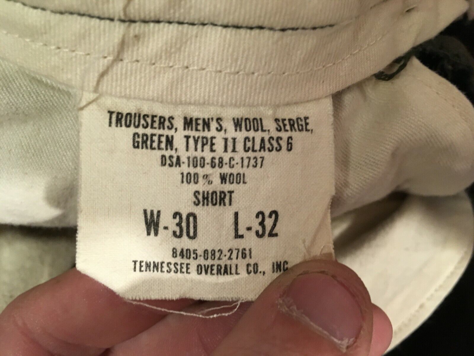 VINTAGE VIETNAM ERA MENS WOOL SERGE GREEN TYPE II CLASS 6 30X32 28"X28" TROUSERS