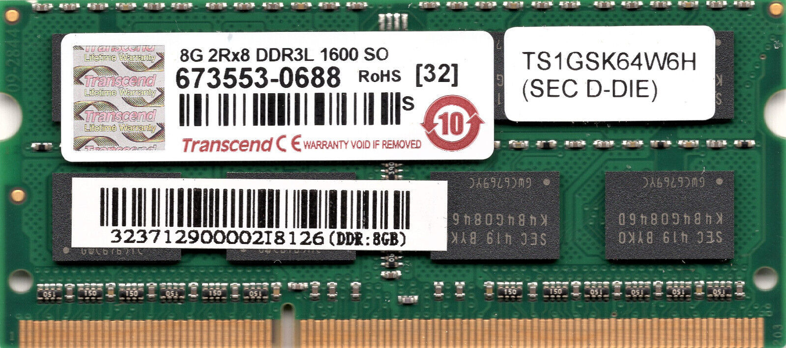 GETAC S400 G2 541385210116 8GB DDR3L SODIMM RAM PC3-12800 TAA, TS1GSK64W6H - NEW