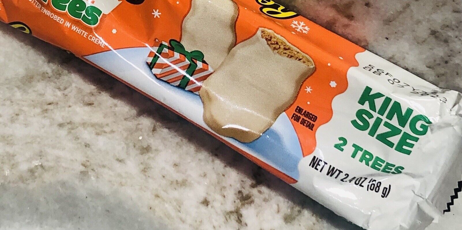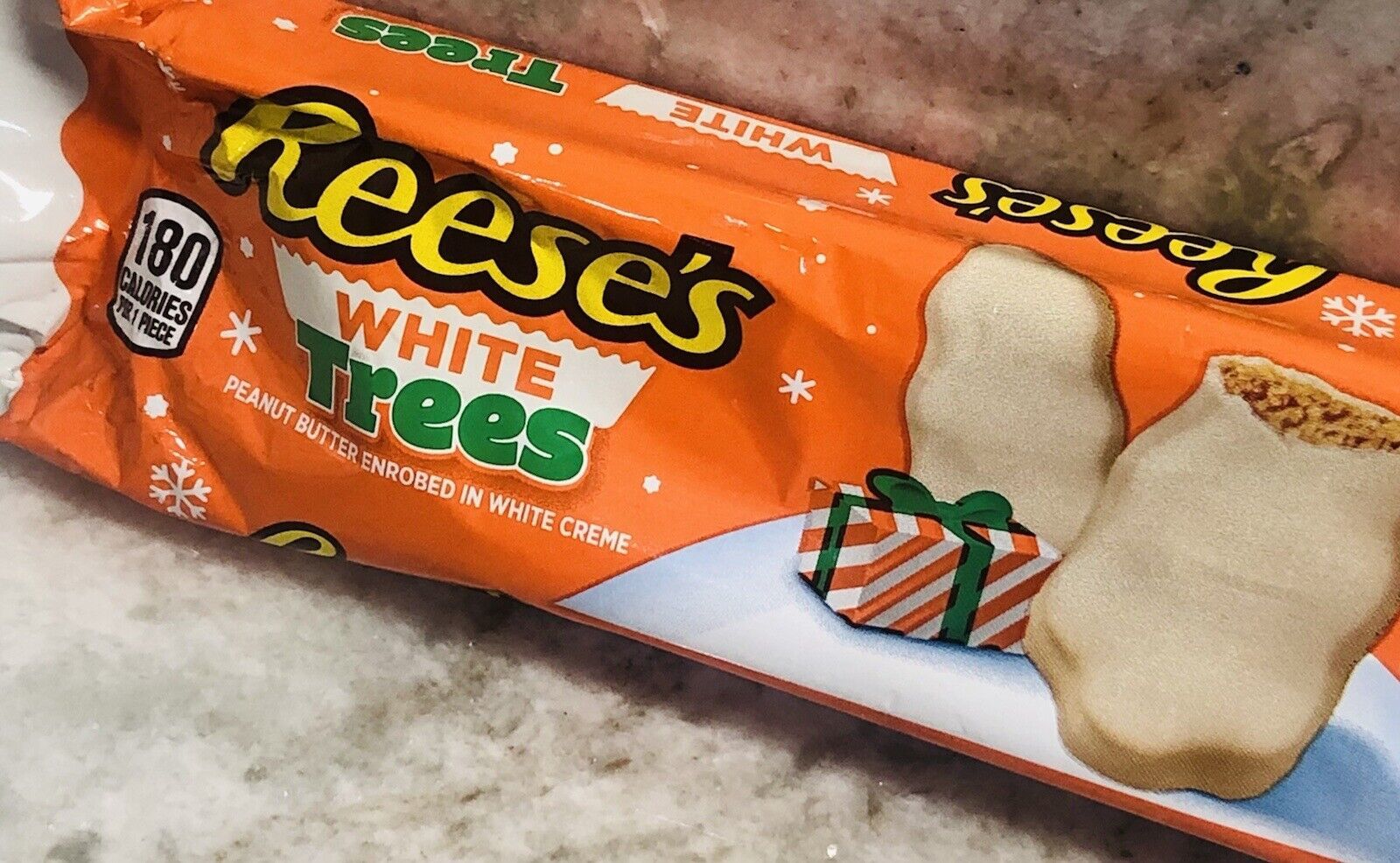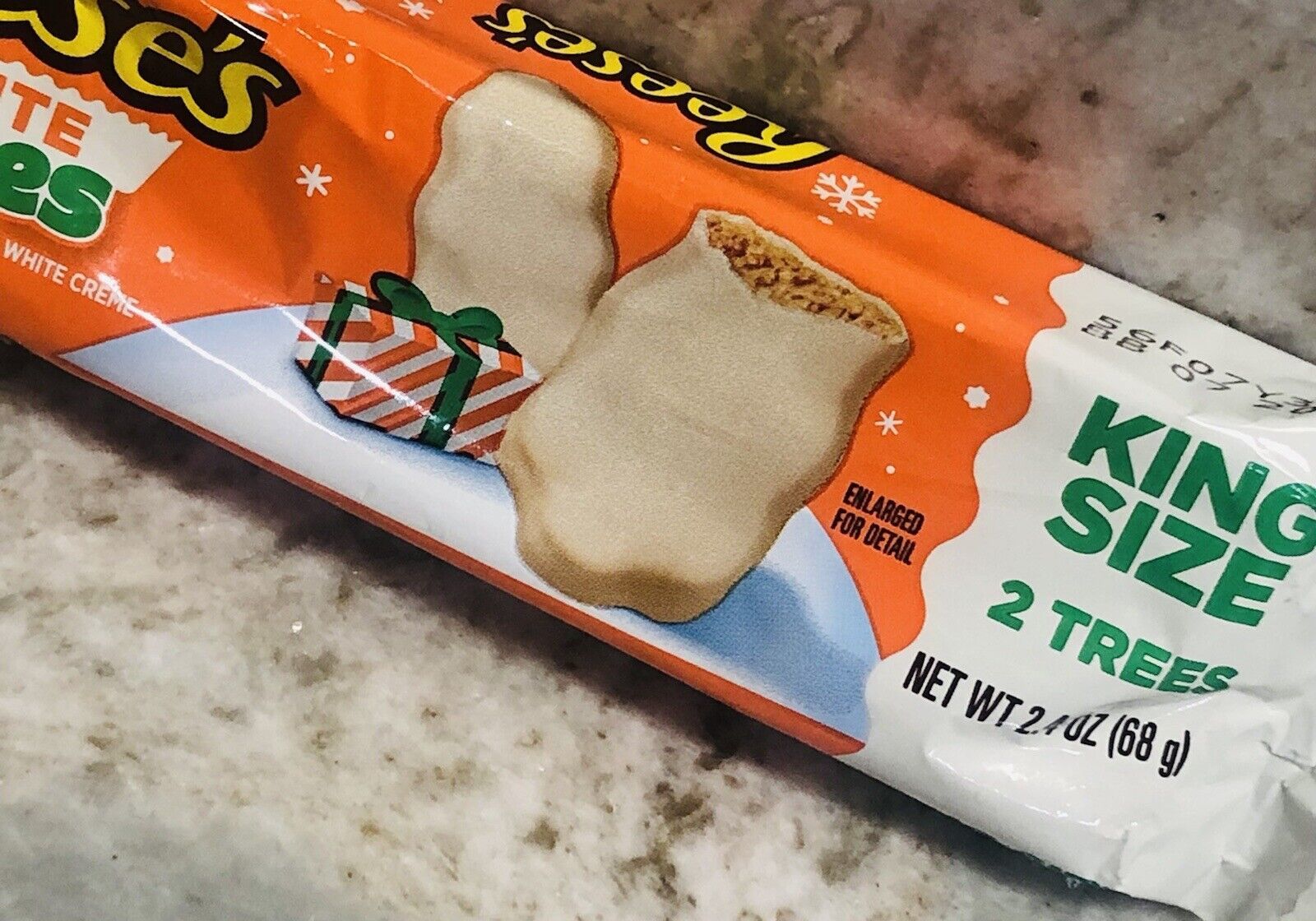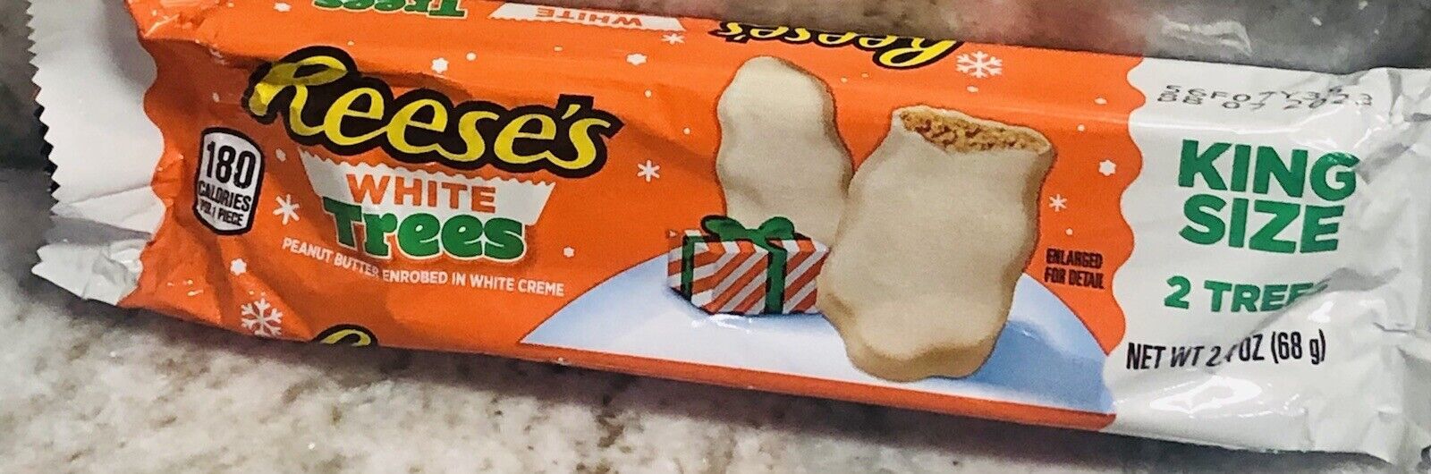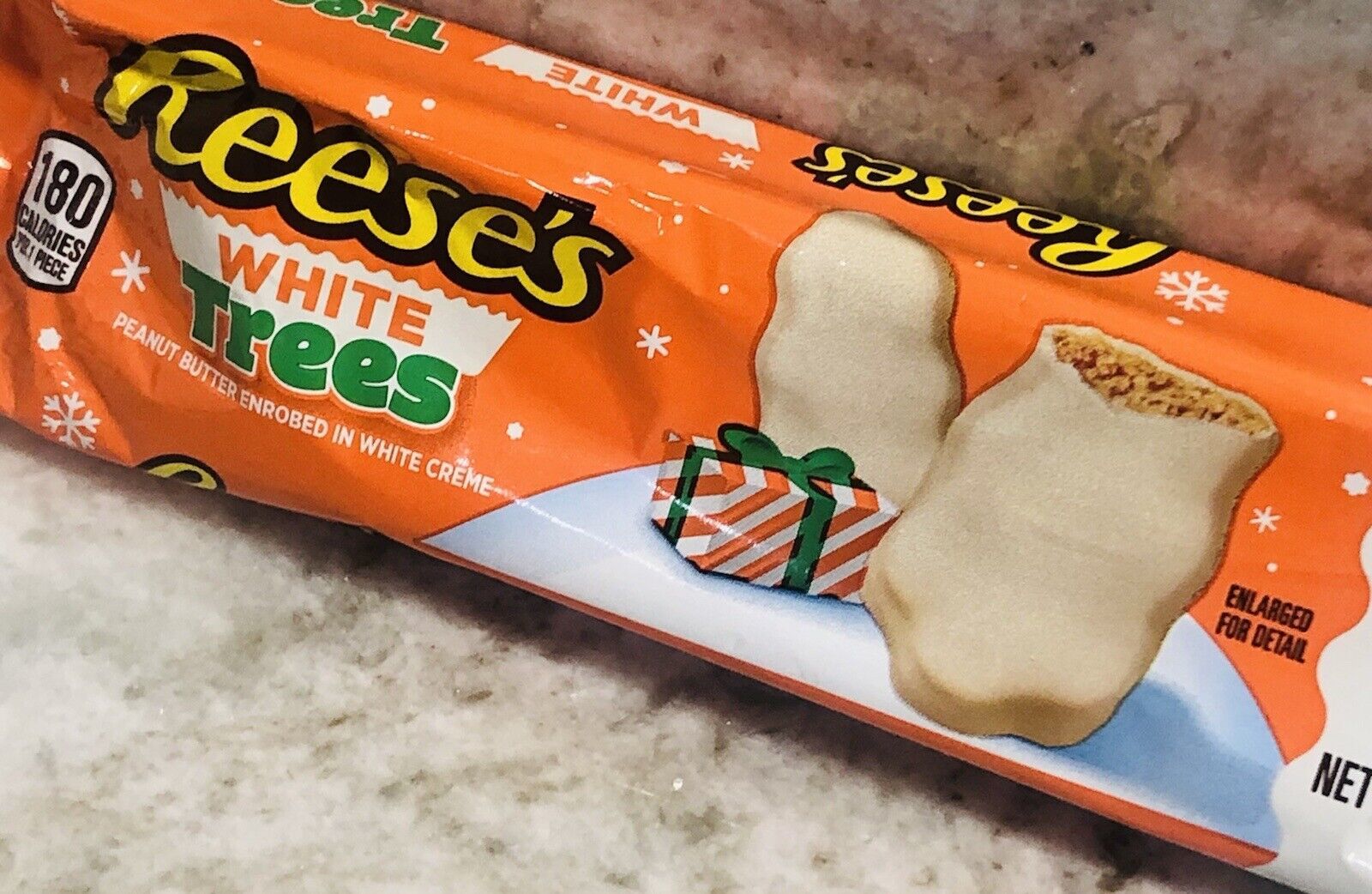 Reese’s Peanut Butter Enrobed in White Creme White Trees. King Size 2 Trees:68g.