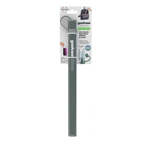 Fusion Brands introduces good case Stainless steel straws in a carrying case that comes with a cleaning brush and fits into your pocket, backpack or purse. These straws are perfect on-the-go and are . Case includes 2 stainless steel straws that are reusable and a cleaning brush. Perfect for the office, school, restaurants, coffee shops, sporting events, Road trips and more. The edges are curved for comfort. The case and straws are dishwasher safe. The bottom cap of the case removes for cleaning. Bpa and toxin free. Each straw measures 8. 5 inches tall by . 25 inches in diameter.