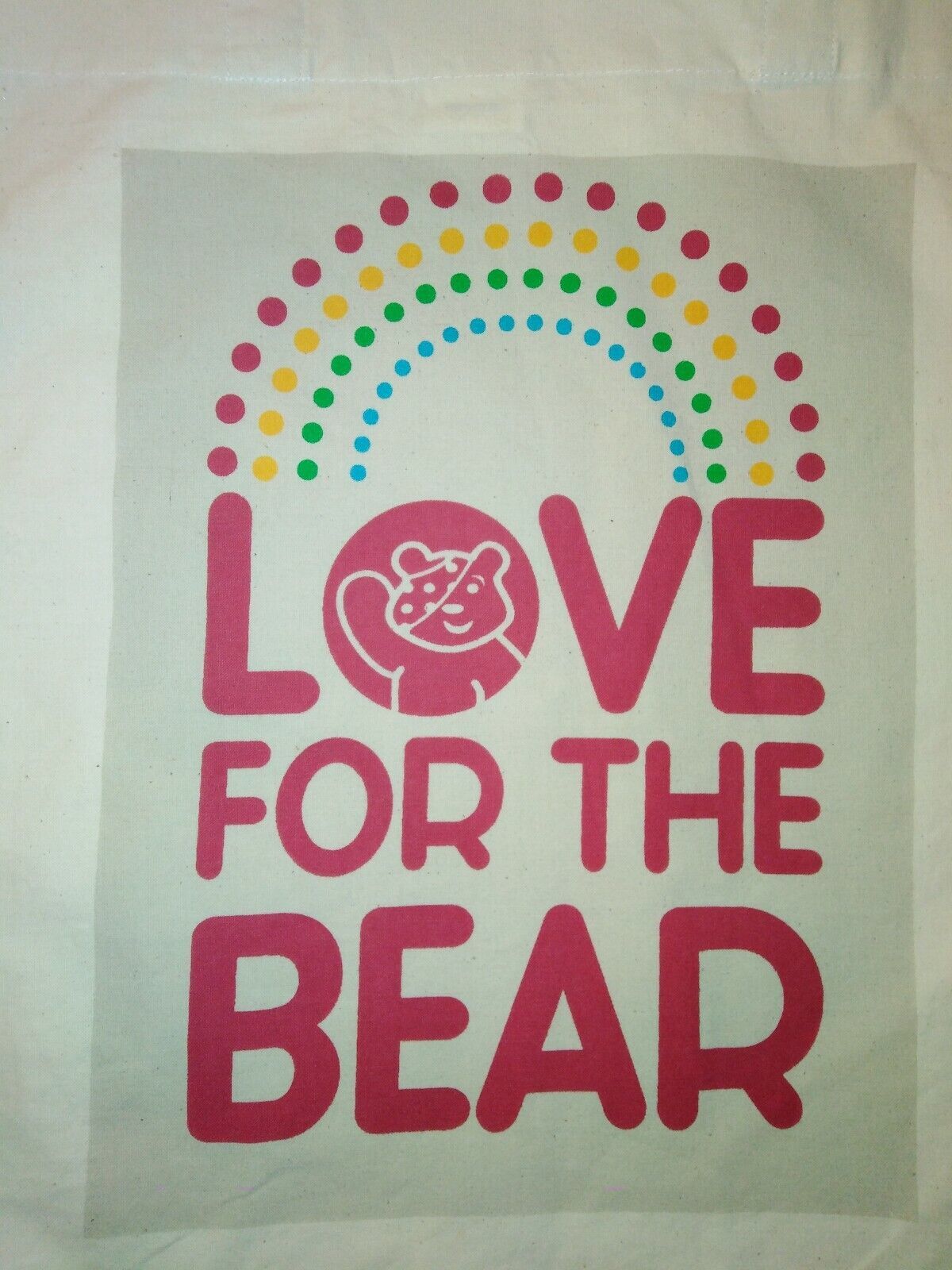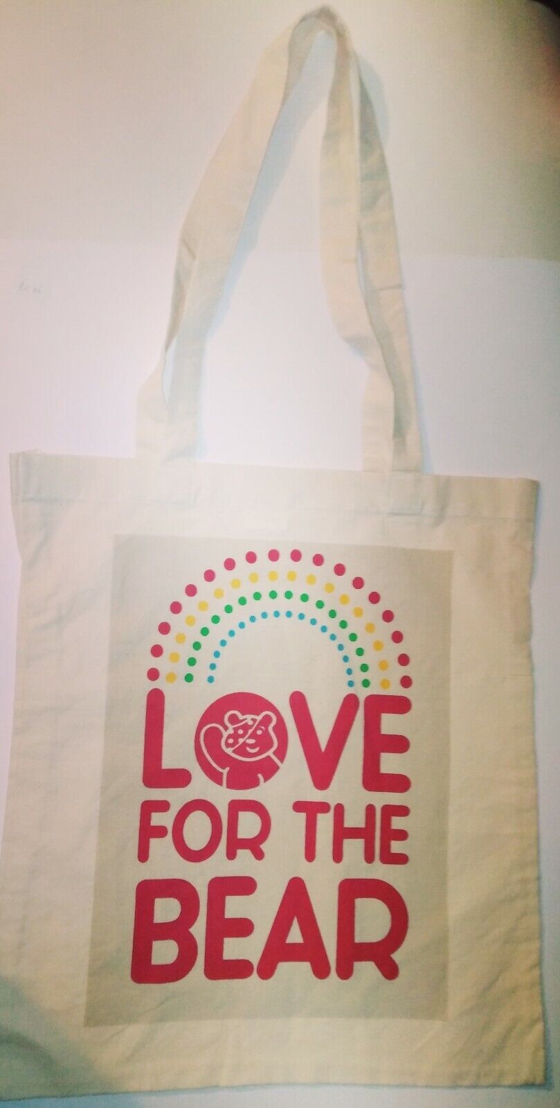Pudsey Love the Bear Bag For Life. A Children in Need favourite tote bag with Pudsey the bear on the front of the bag also eco-friendly but most importantly the Children in Need will benefit from buying this bag as we're making a small donation towards charity so please support us.