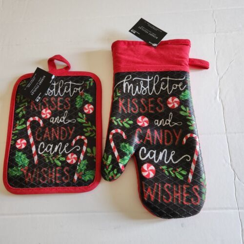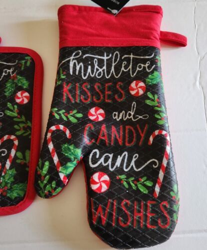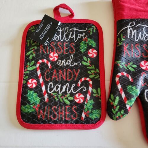 New Robert Stanley Oven Glove Mitt Hot Pad Set Christmas Mistletoe Kisses