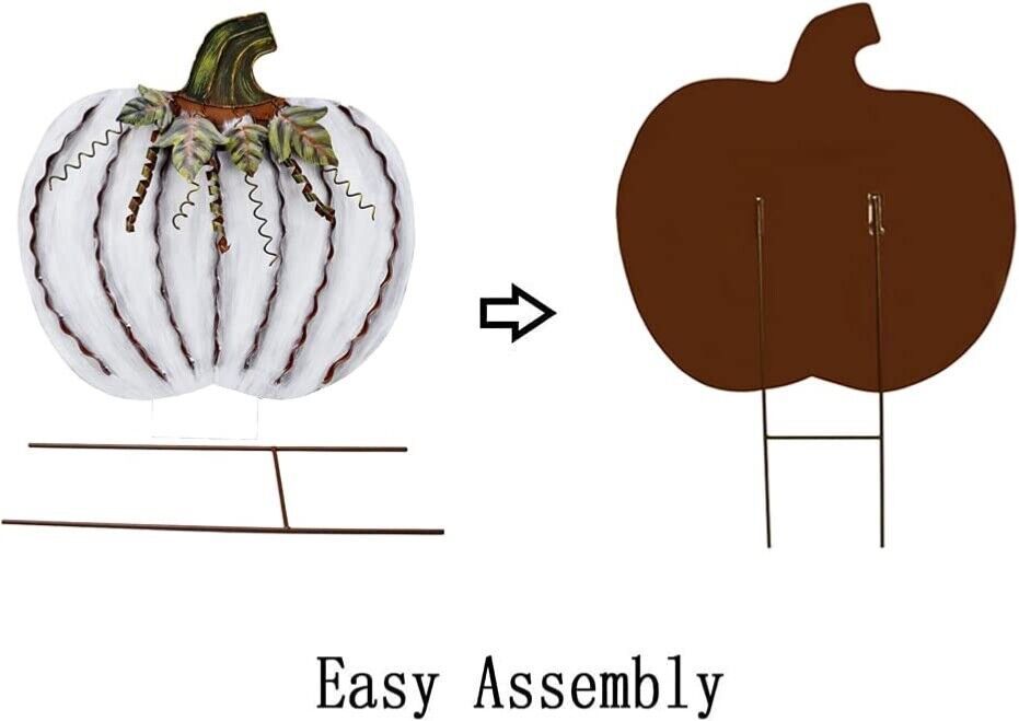 The metal pumpkin outdoor decor features with a H support that can be inserted in soil to stand firmly.
