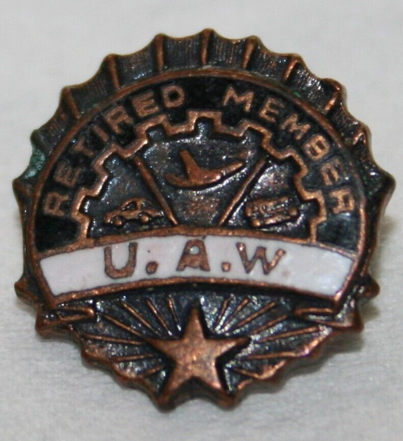 Retired Member UAW Lapel / Tie Pin Brass Enamel United Automobile Workers Union