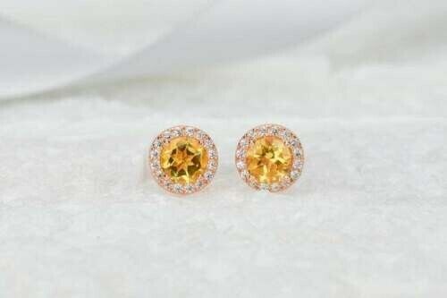 2.80Ct Simulated Citrine Diamond Push Back Earrings 14K Rose Gold Plated Silver