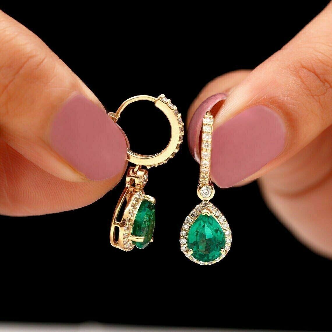 3.0Ct Simulated Pear Green Emerald Halo Earring In 14K Yellow Gold Plated Silver