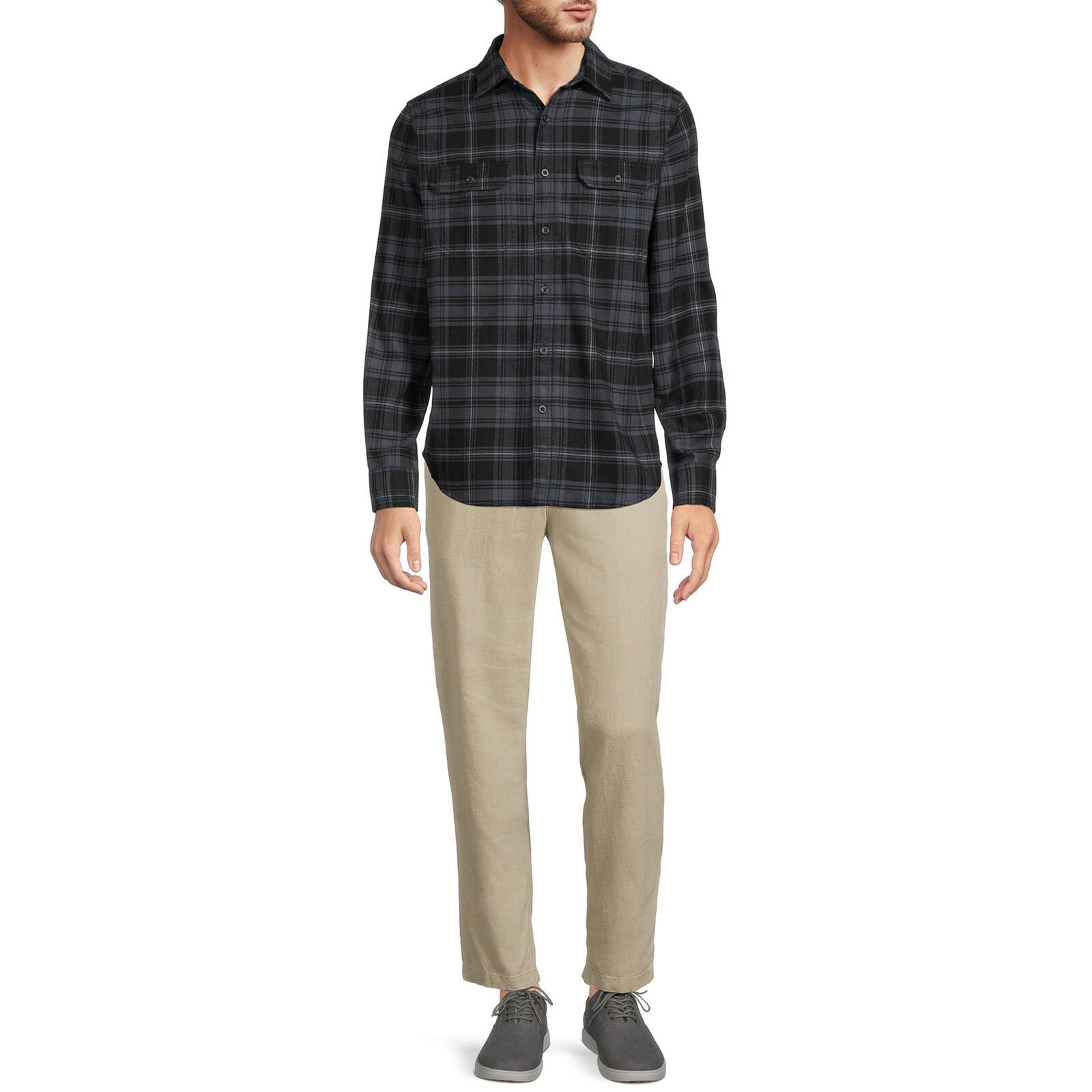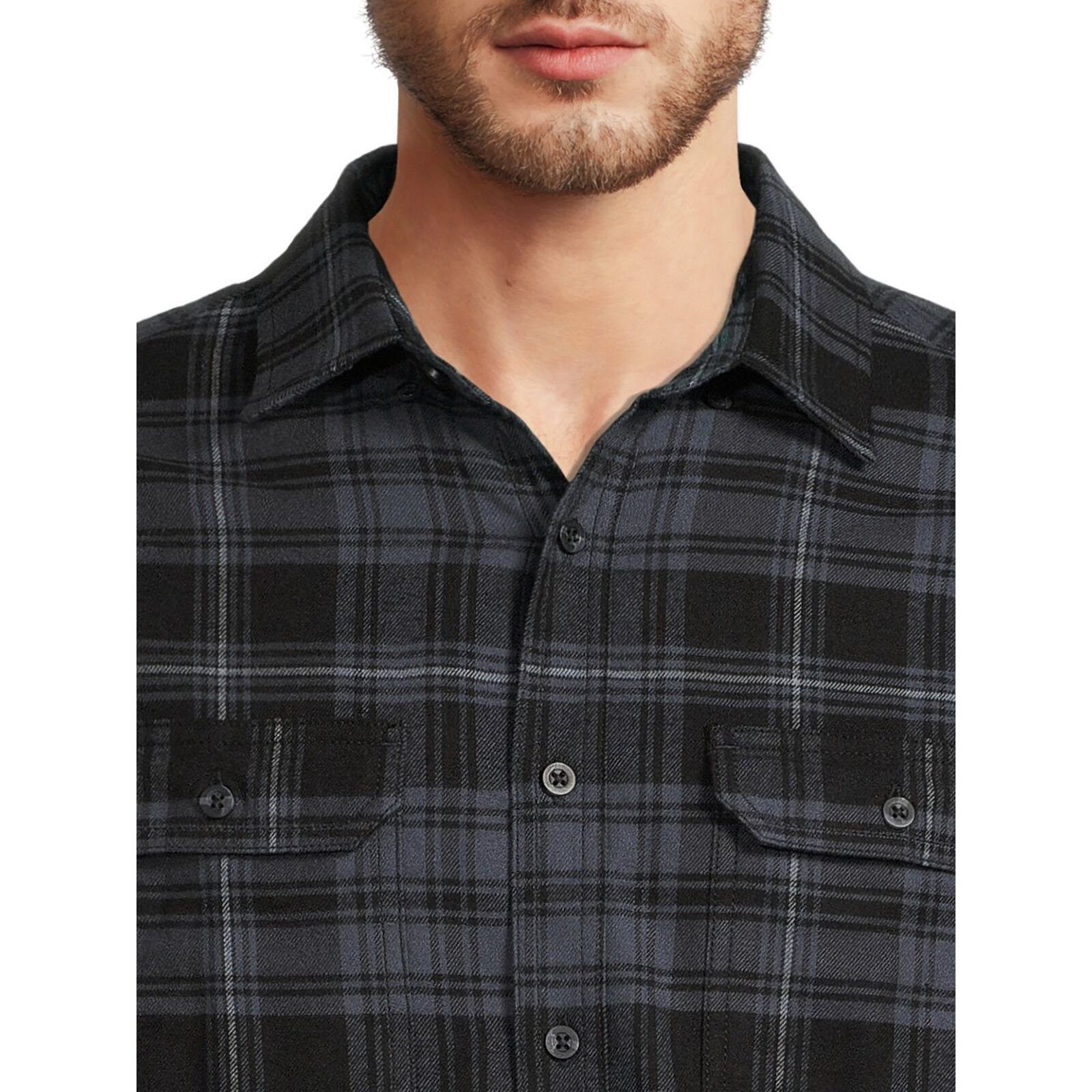 George Men's Long Sleeve Flannel Shirt Size M (38-40) Color Black Soot Plaid