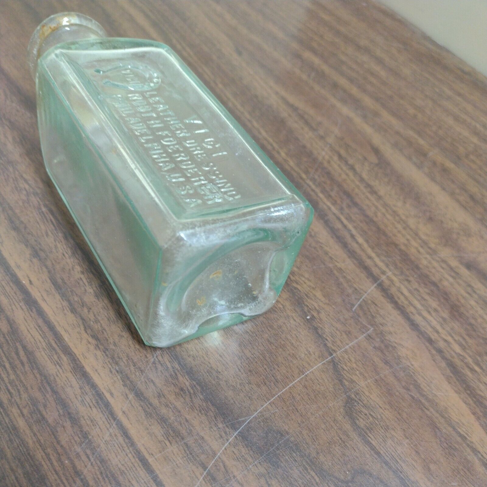 OLD Aqua VICI Leather Dressing Bottle. Robt. H. Foerderer Philadelphia HORSESHOE.