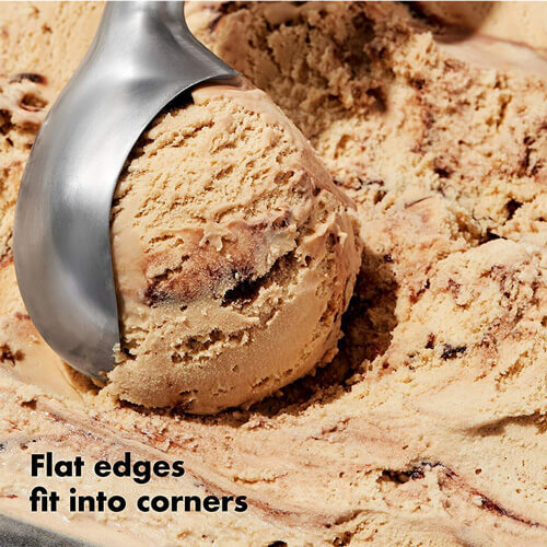 Scoop perfectly round ice balls with the Oxo Good Grips ice cream scoop. The ice scoop is made of high-quality stainless steel and has a soft handle. After use, the scoop can go into the dishwasher.