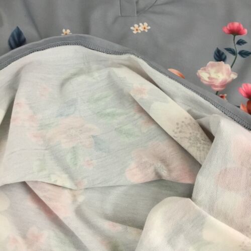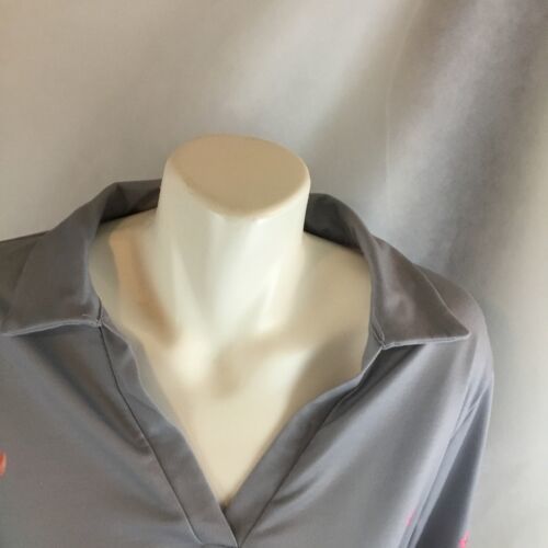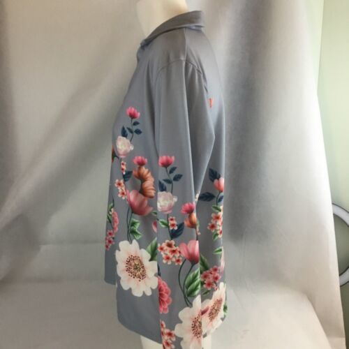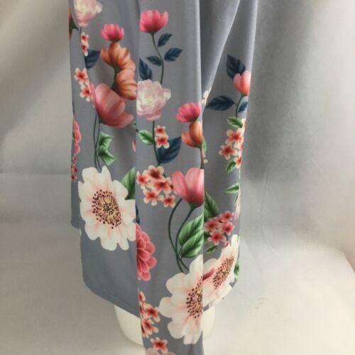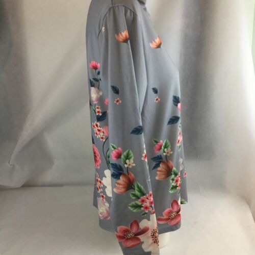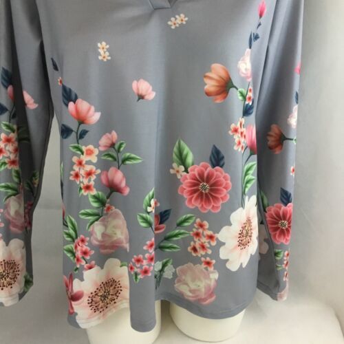 Gray Floral Long Sleeve V Neck Collar Pull Over Top Size Large.