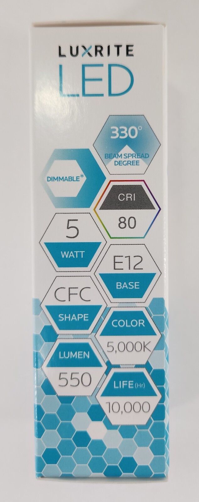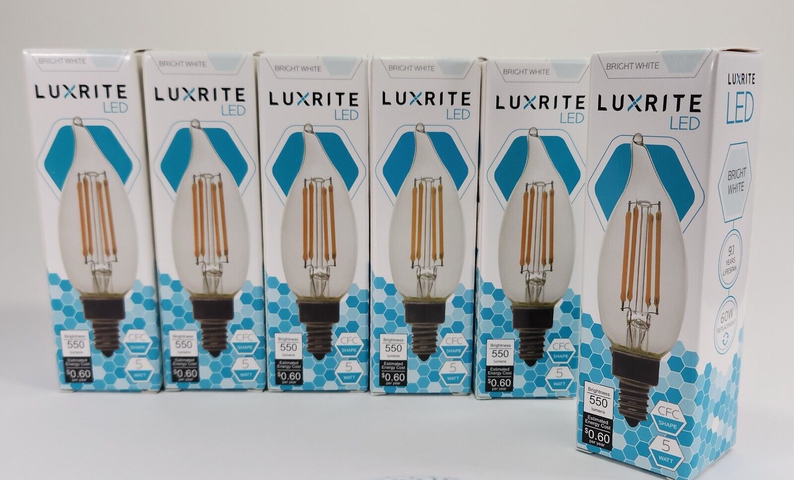Quantity 6 Luxrite 5W Flame Tip E12 5000K LED5CFC/CL/50K/D (You get all 6 of them)