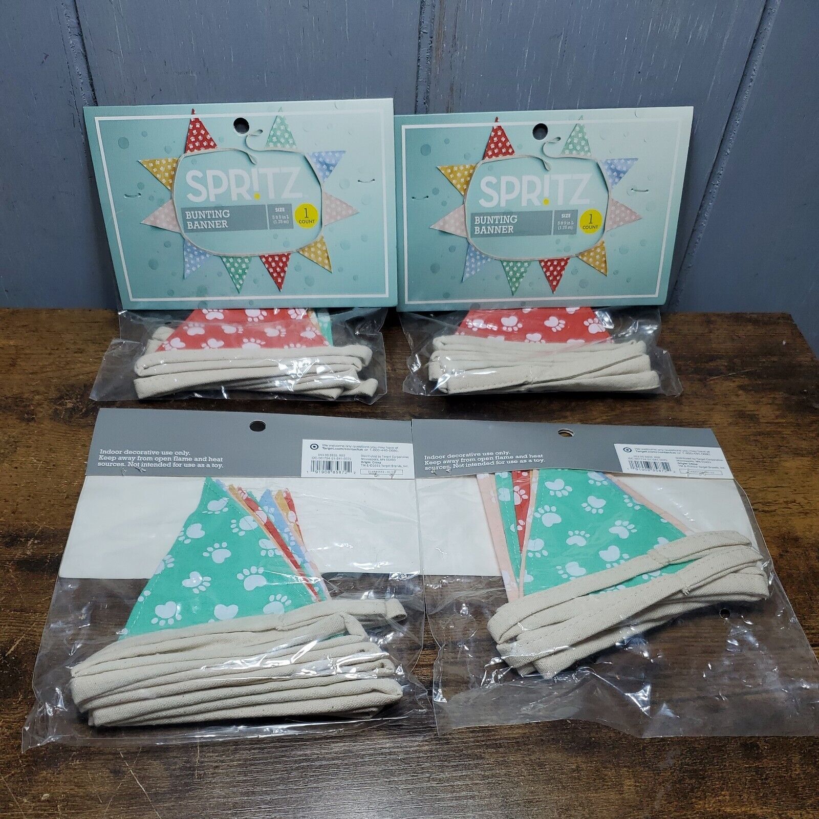 New-Spritz puppy paw lot of 4 Bunting Banner. 5ft 9in L. Each total of 23ft.