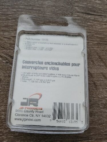 JR Products 13135 , Snap In Blank Switch Cover White . Condition is New. Shipped with USPS First Class Mail within 24 hours.