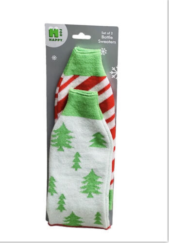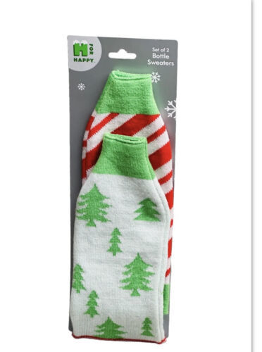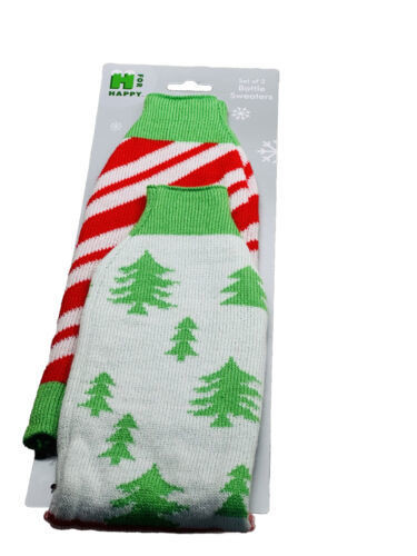 H for Happy Christmas Tree Candy Cane Sweater Wine Bottle Covers Set of 2, New, See Photos for More Details, Message with Questions!