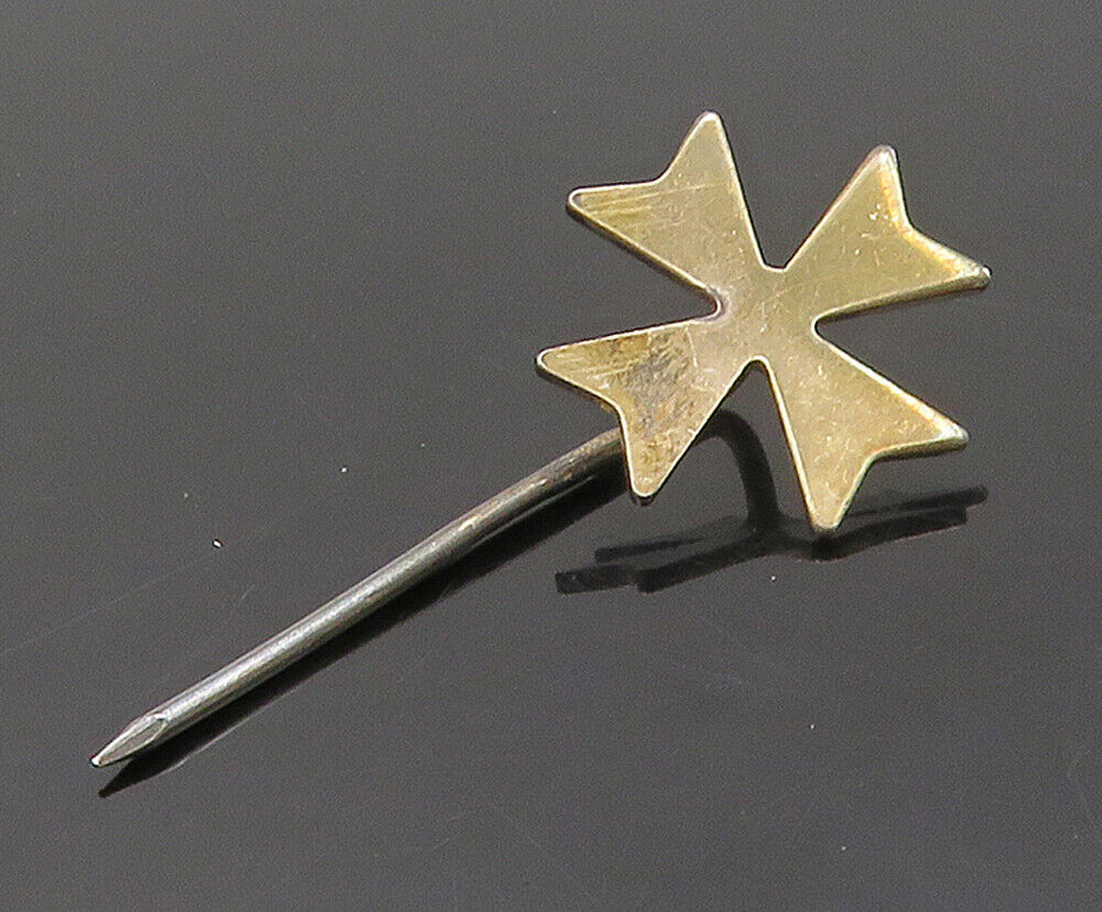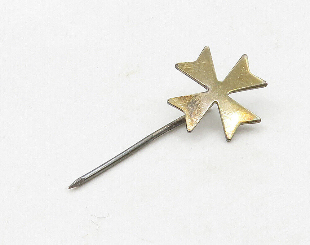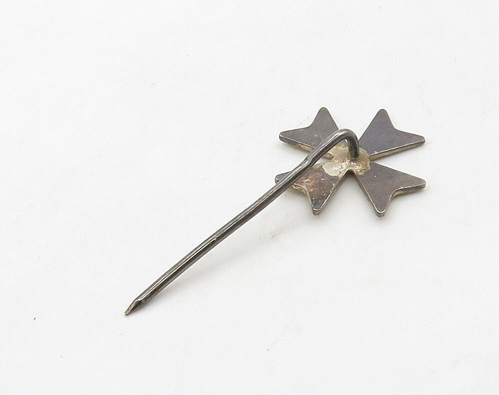 925 Sterling Silver - Vintage Dark Tone Smooth Petite Cross Lapel Pin - TR2245
