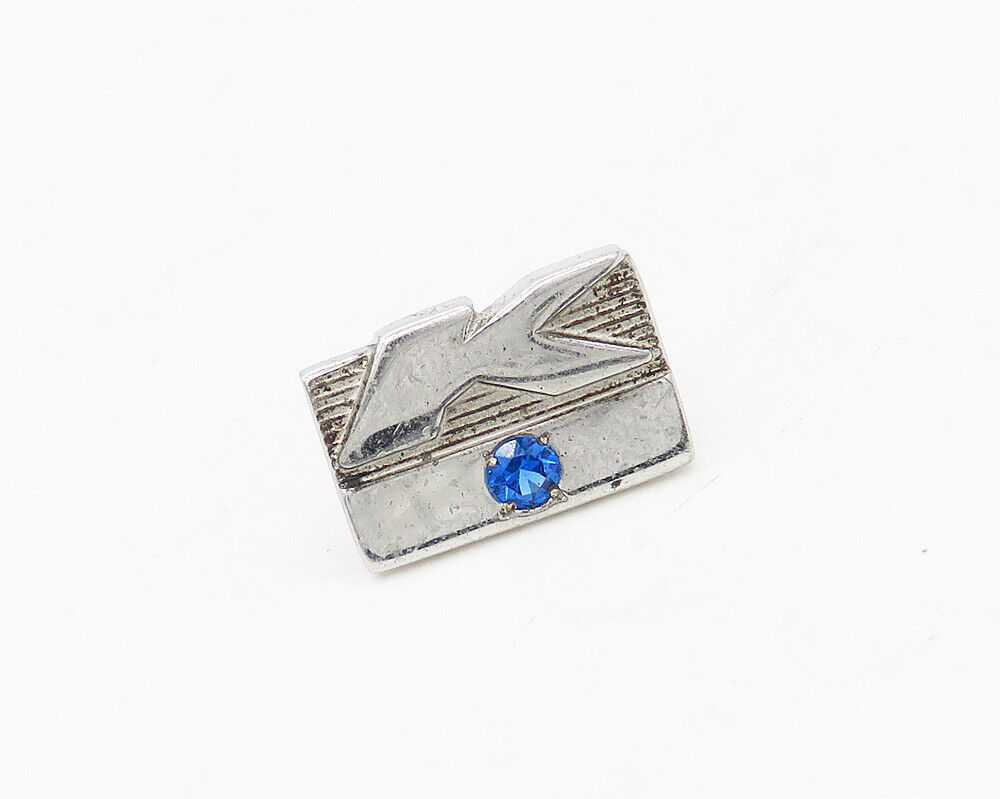 925 Sterling Silver - Vintage Petite Blue Topaz K Initial Lapel Pin - TR2329