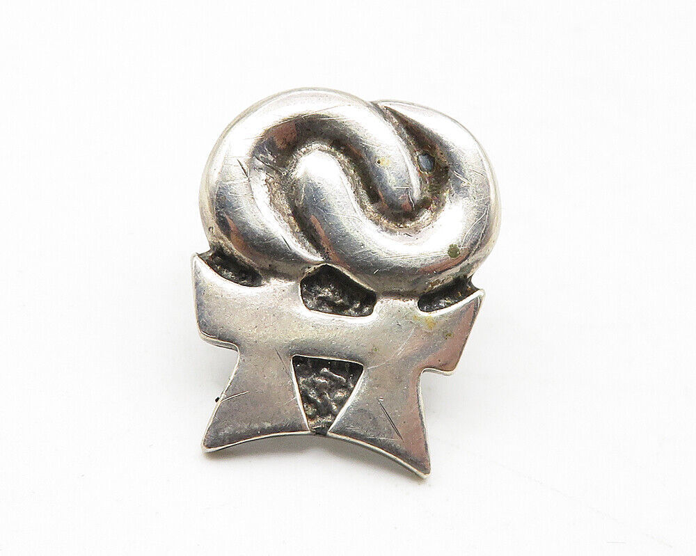 925 Sterling Silver - Vintage Shiny Smooth Swirl Design Sweater Pin - TR1816