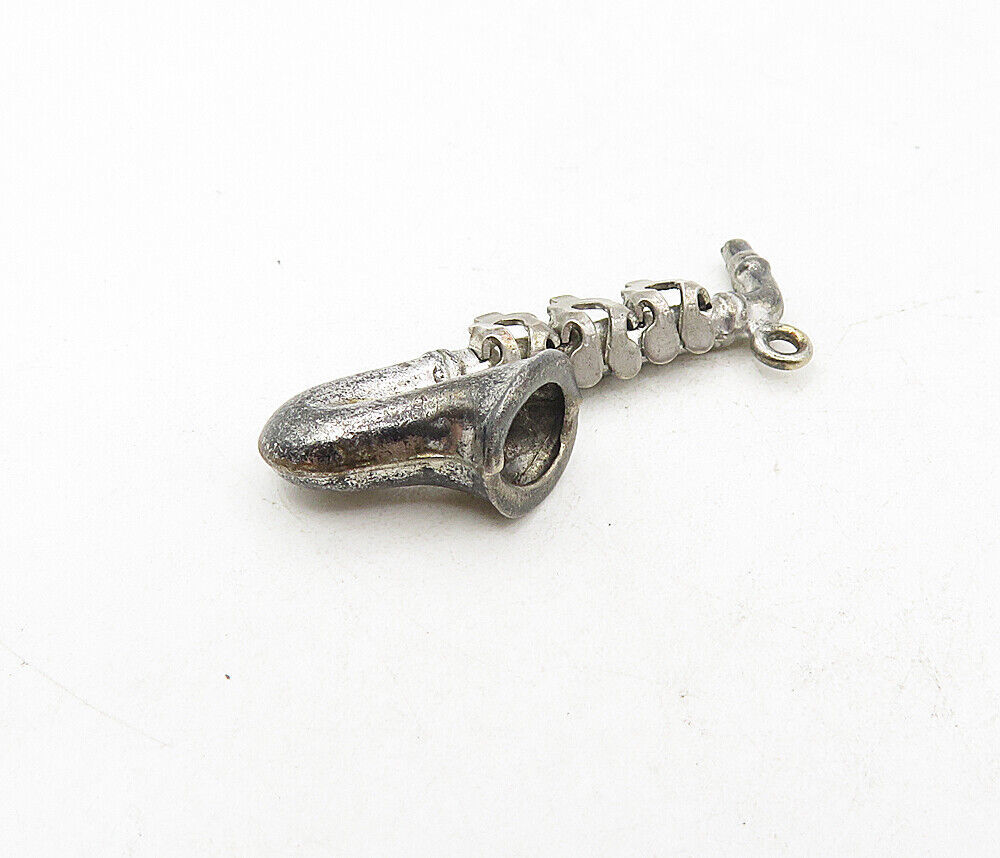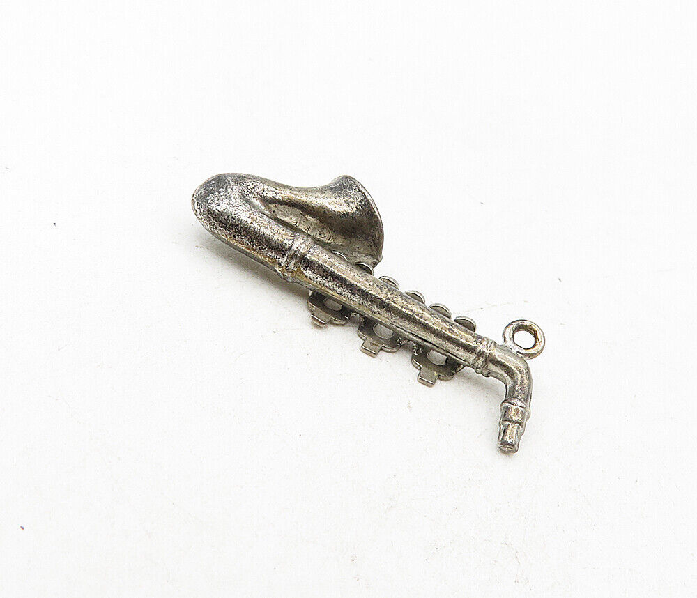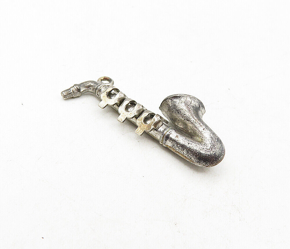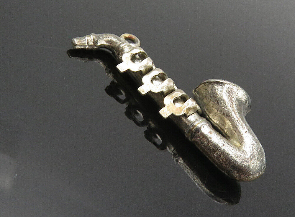 925 Sterling Silver - Vintage Petite Dark Tone Saxophone Trinket (MOVES)- TR1444