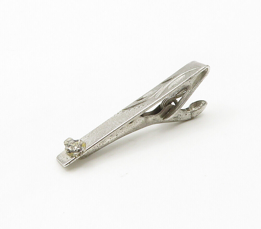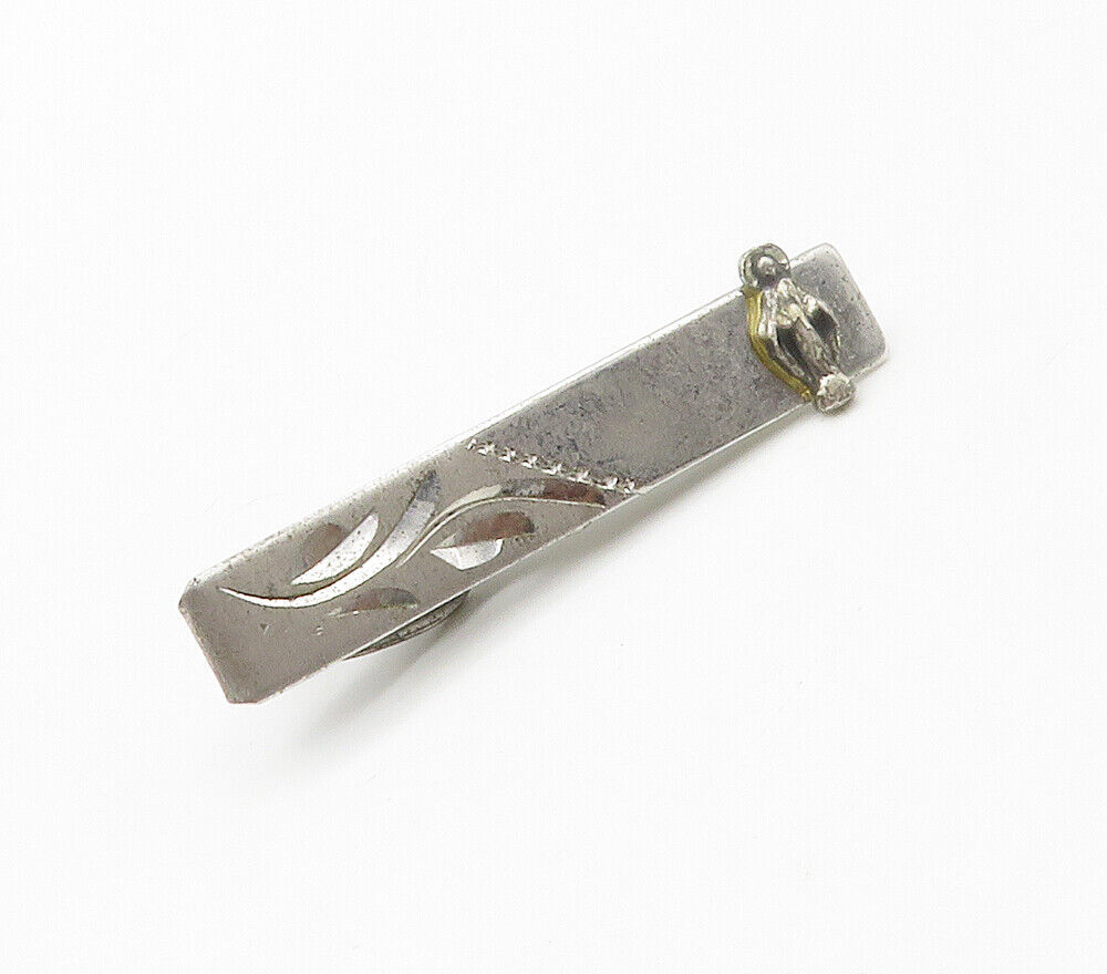 925 Sterling Silver - Vintage Shiny Etched Floral Vine Detail Tie Clip - TR2126