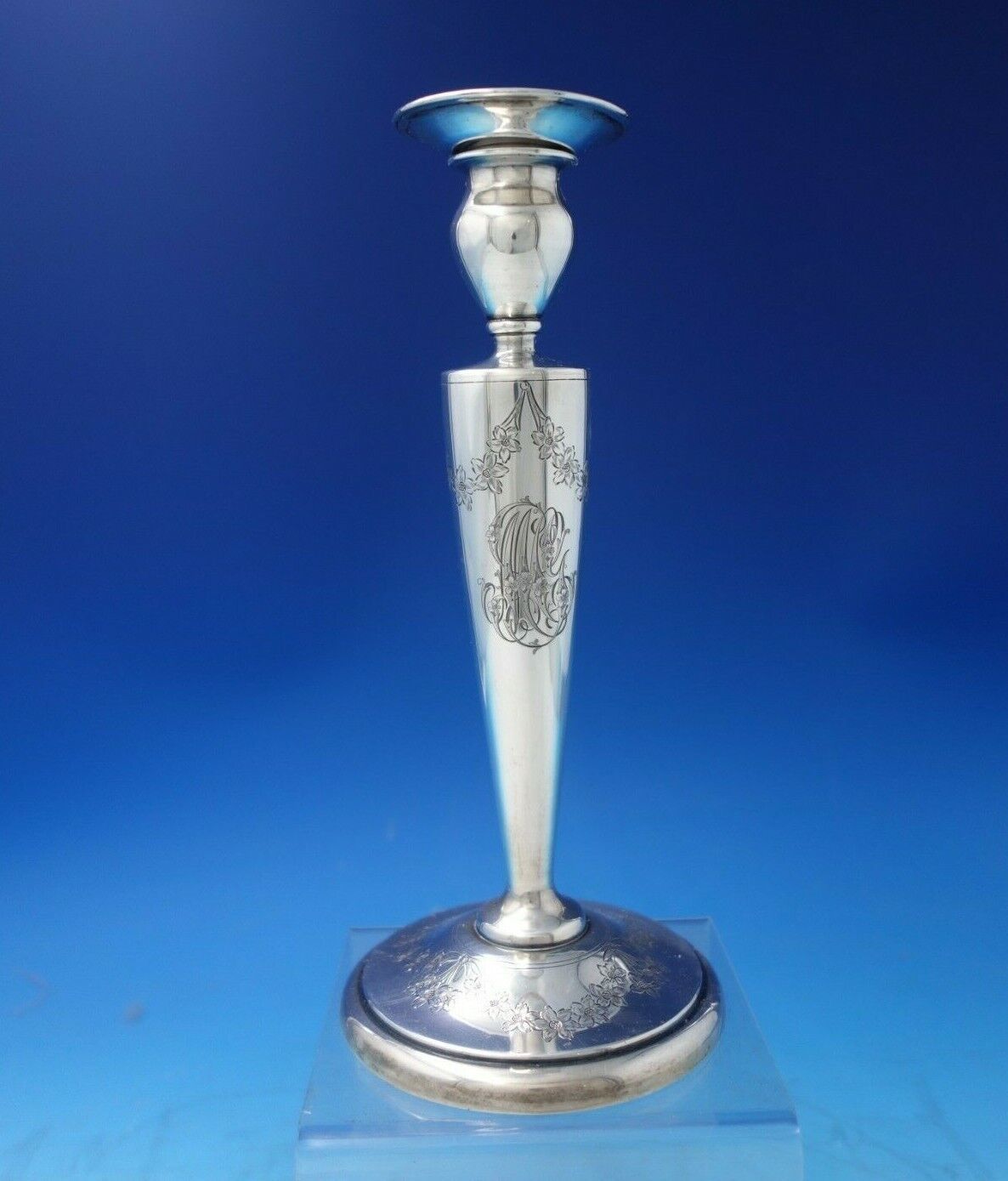 Wonderful Black Starr and Frost sterling silver bright-cut candlestick pair marked #108. These candlesticks measure 10" tall x 4 1/4" and are weighted. They are monogrammed (see photos), and are in good vintage condition. Marvelous!