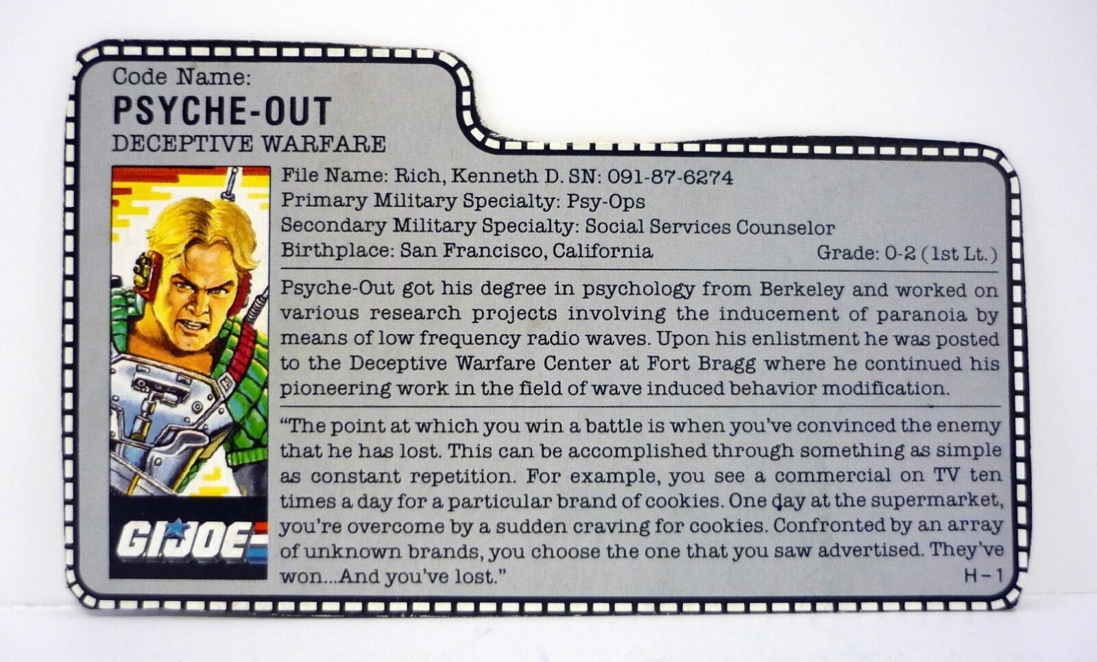 GI Joe Psyche-Out File Card Vintage Action Figure Accessory Part 1987