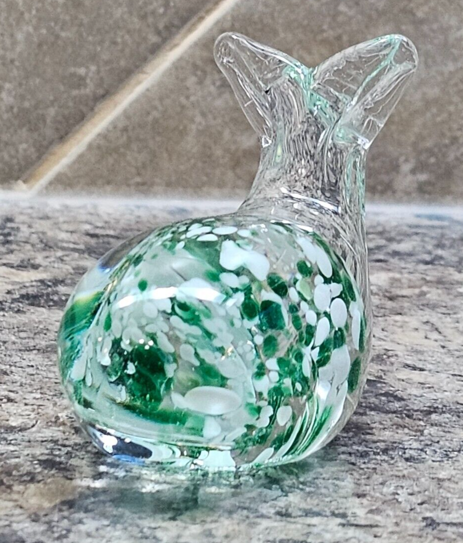 Whale Glass Paperweight Green White BUF