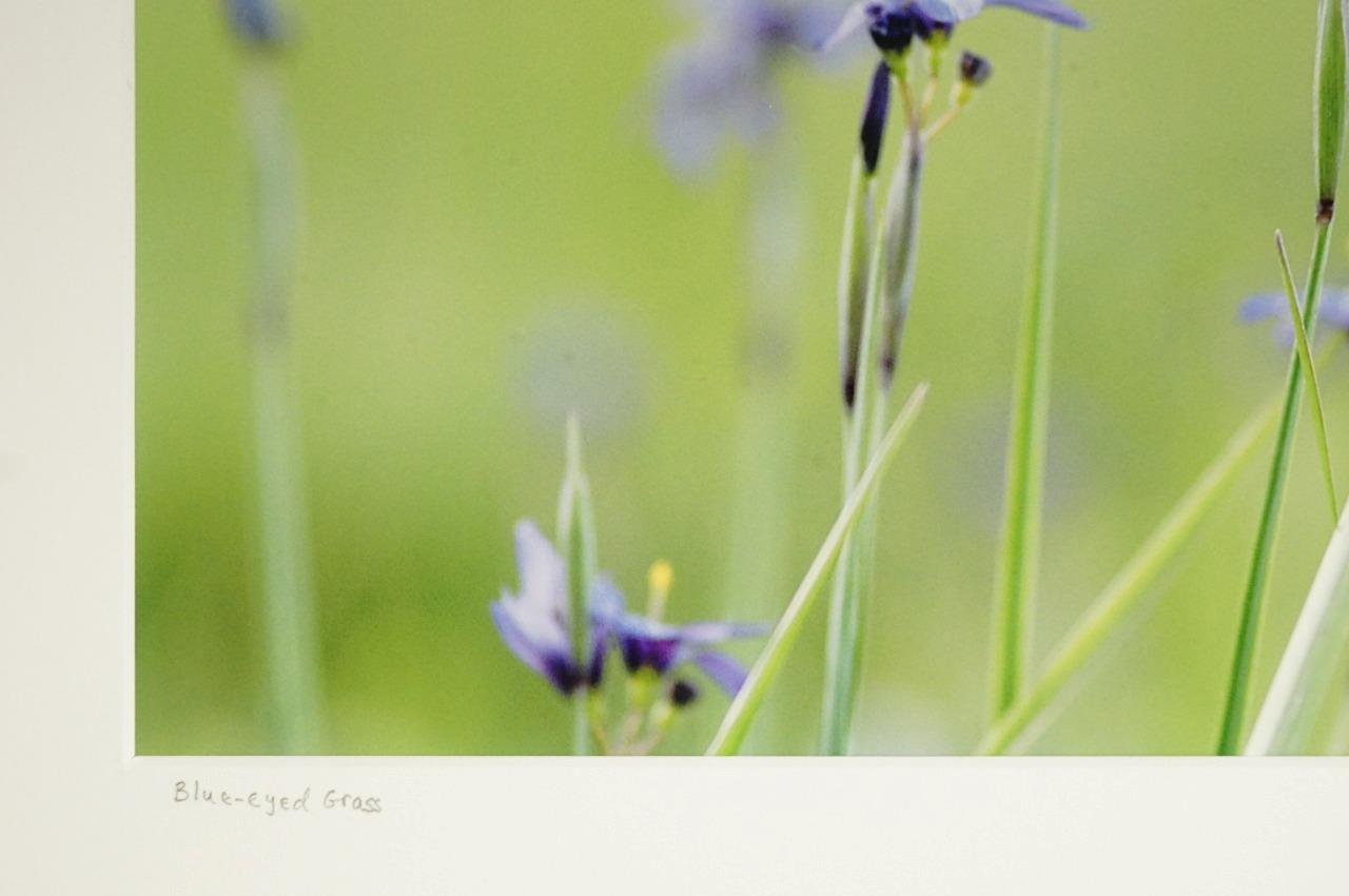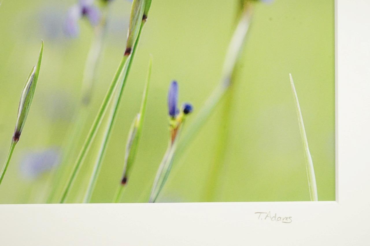 Tom Adams Photography Sisyrinchium Blue Eyed Grass Oregon Photo Art 16x20. Will fit in a standard frame. Titled and signed in pencil by the photographer.