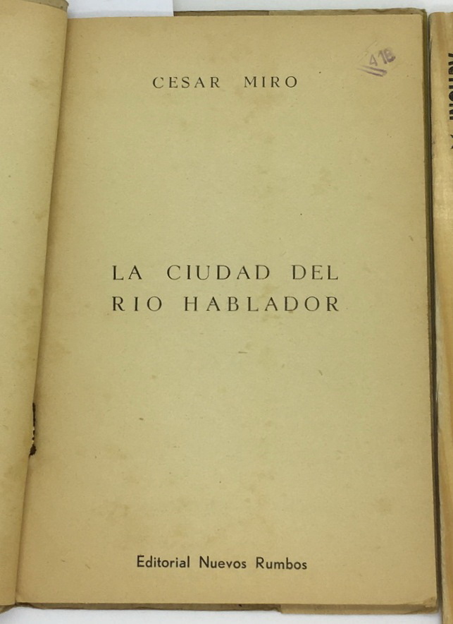 In Spanish. Short description: Cesar Miro. La Ciudad del Rio Hablador, Lima, 1959. Please feel free to contact us for a detailed description of the copies available. SKUZLO000486
