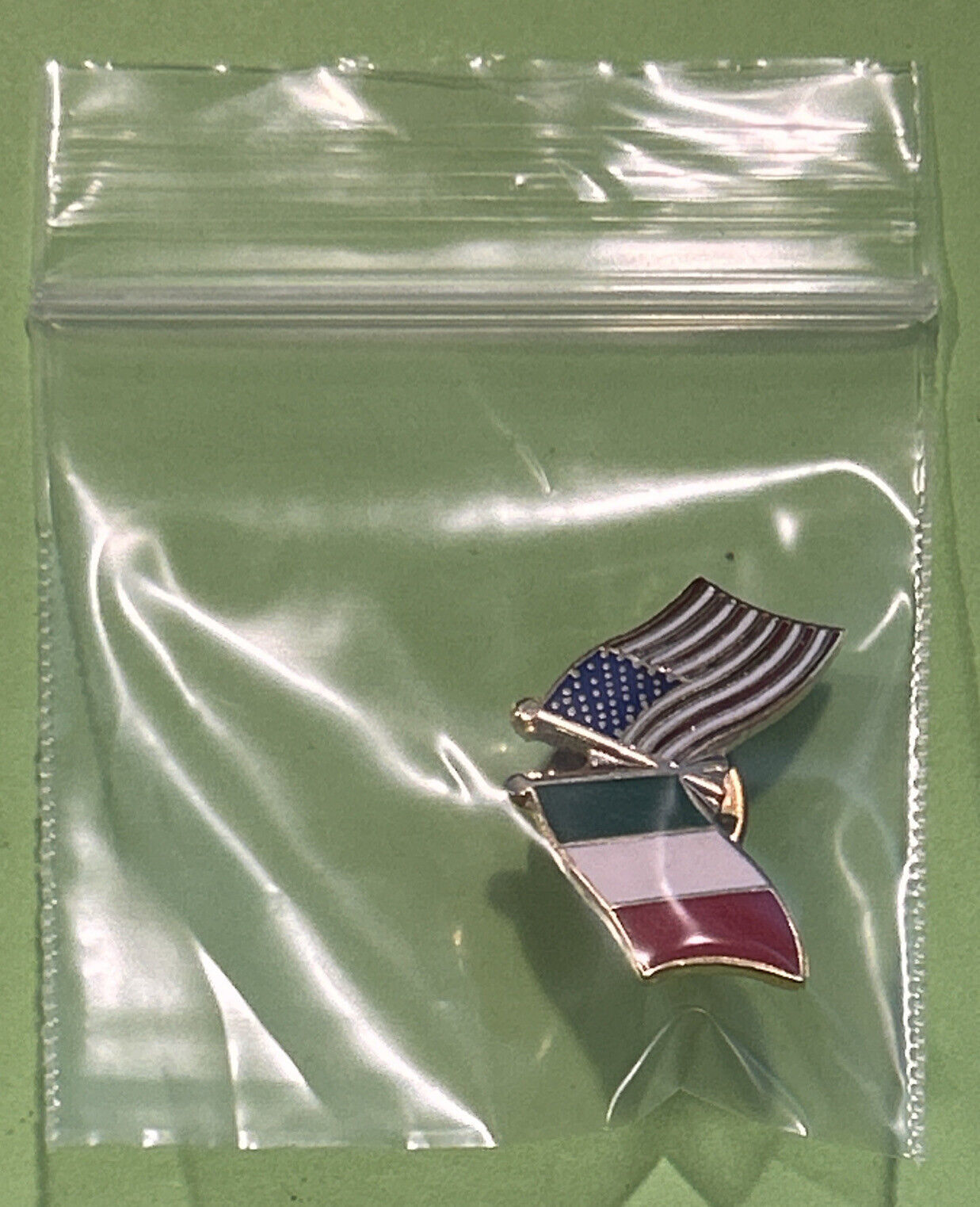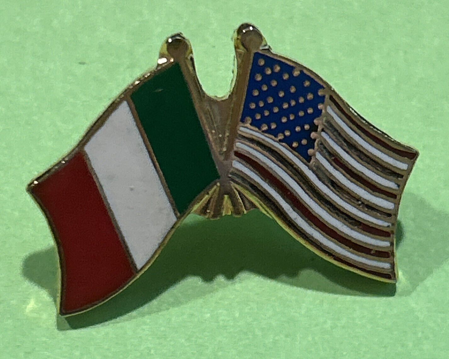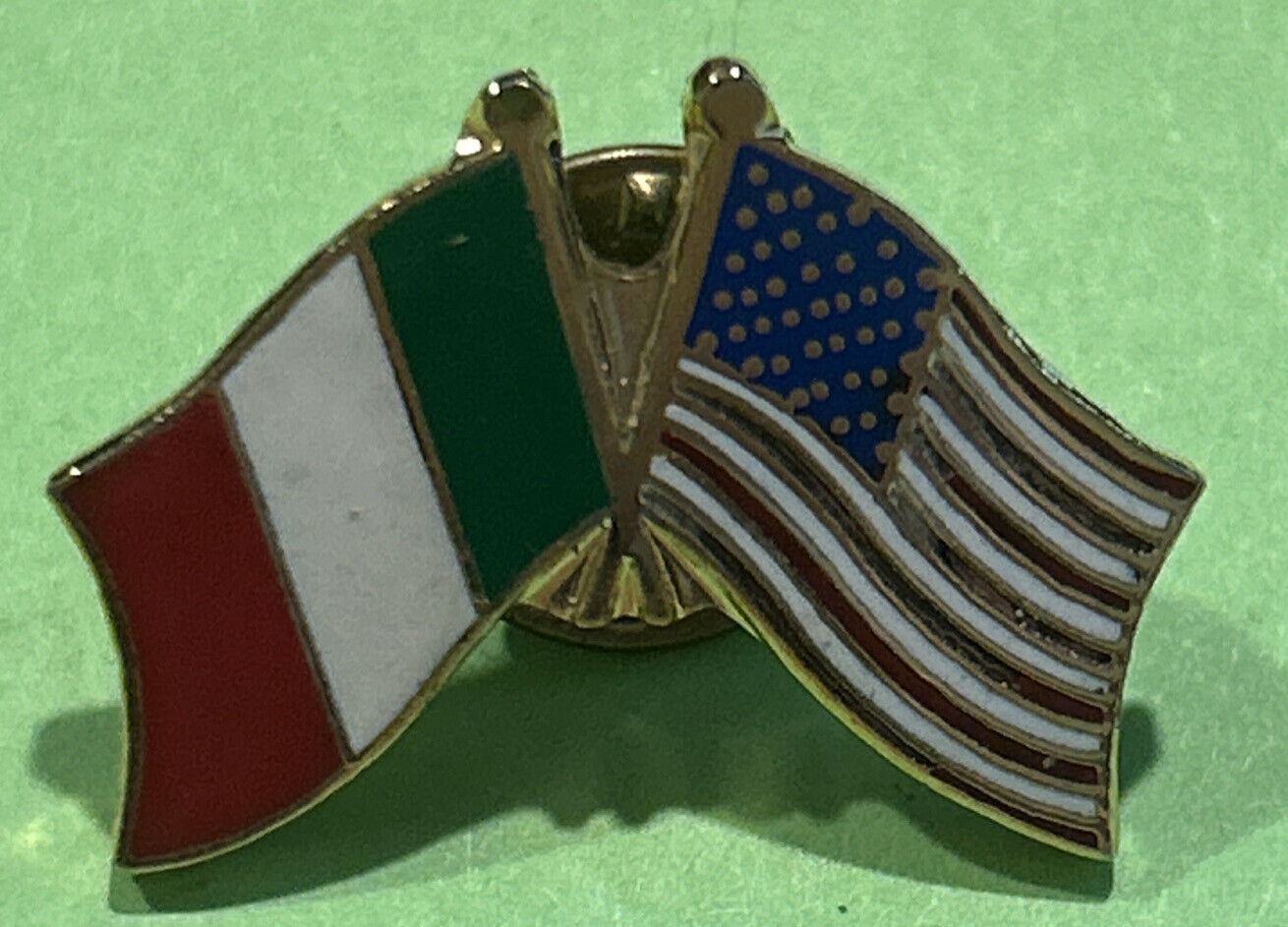Vintage USA American Italy Friendship Flag Bike Motorcycle Hat Cap lapel Pin.