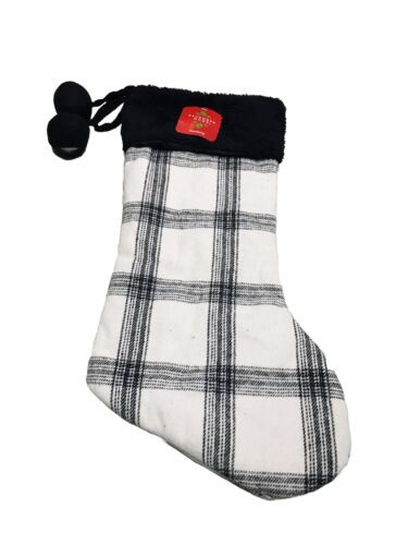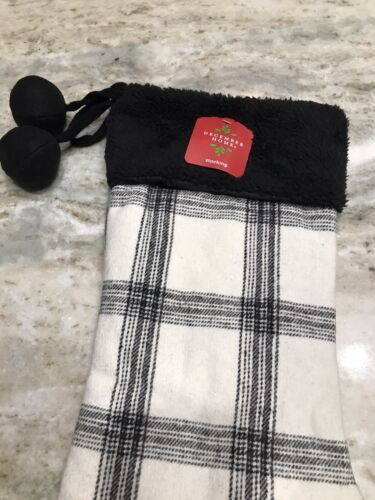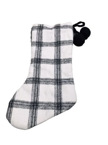 DECEMBER HOME BLACK AND WHITE CHECKED PLAID CHRISTMAS STOCKING 18 In