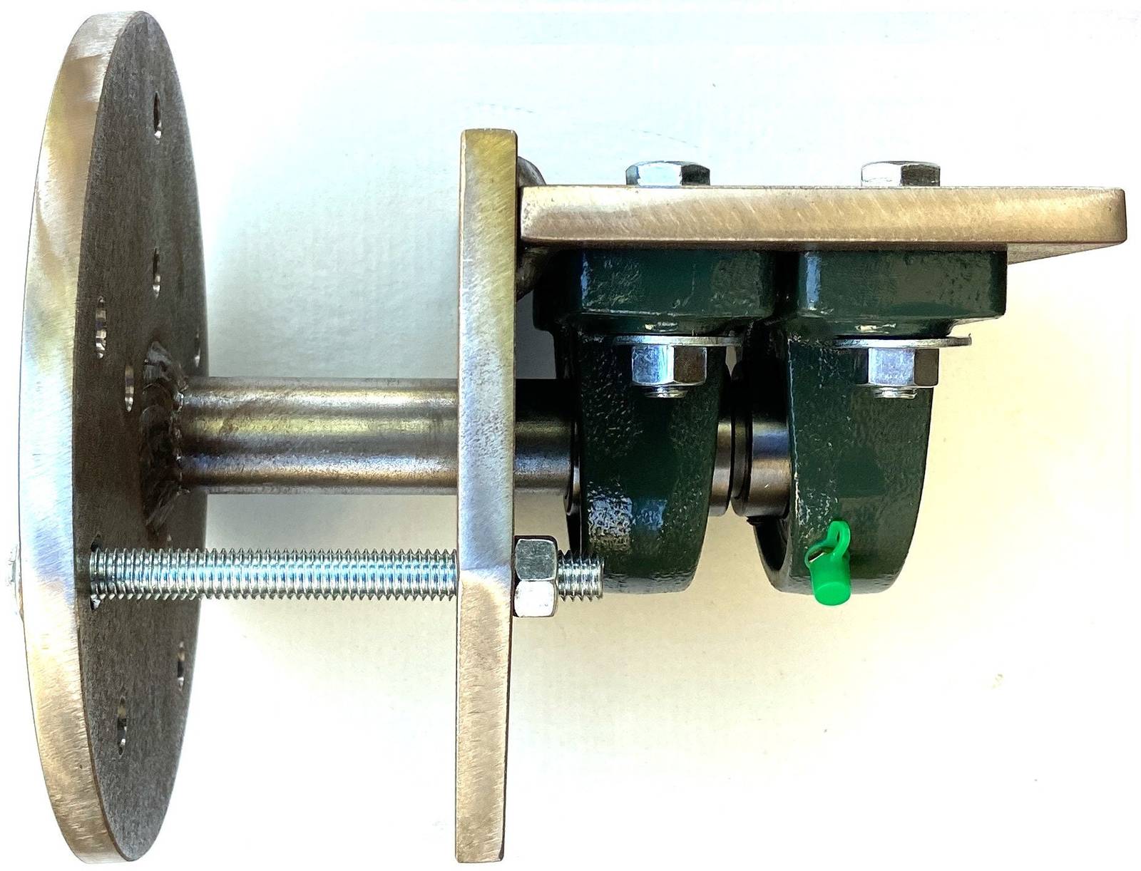 (2) 3โ Square Connector Brackets will connect the 3โx21โ Vertical Hub Support to the Base using (4) included 3/8" bolts and nuts.