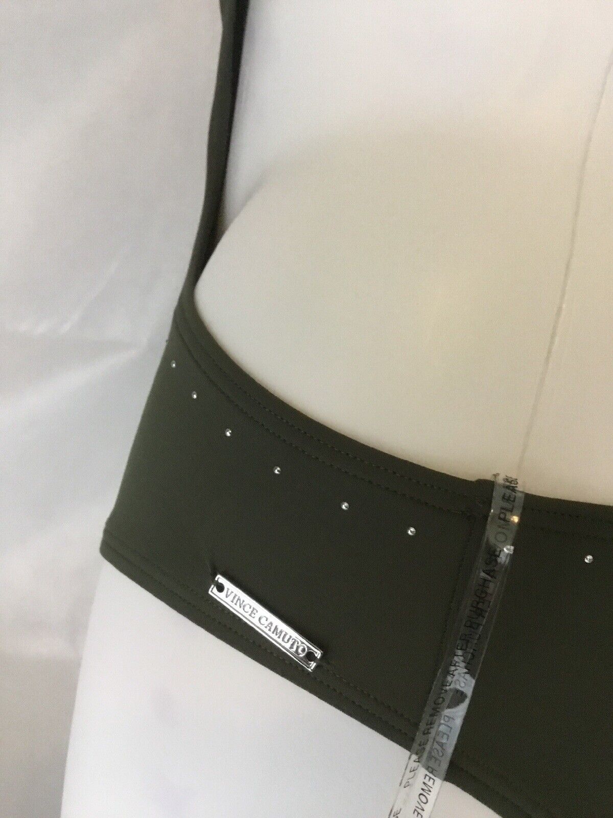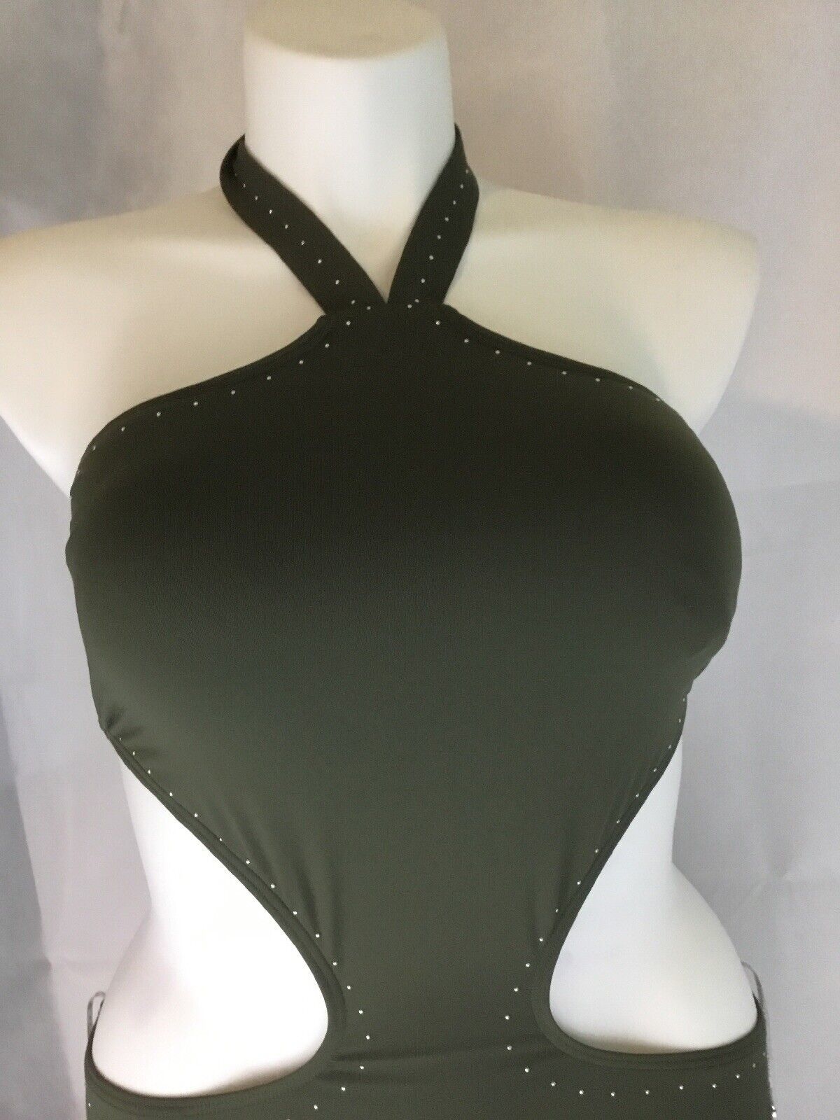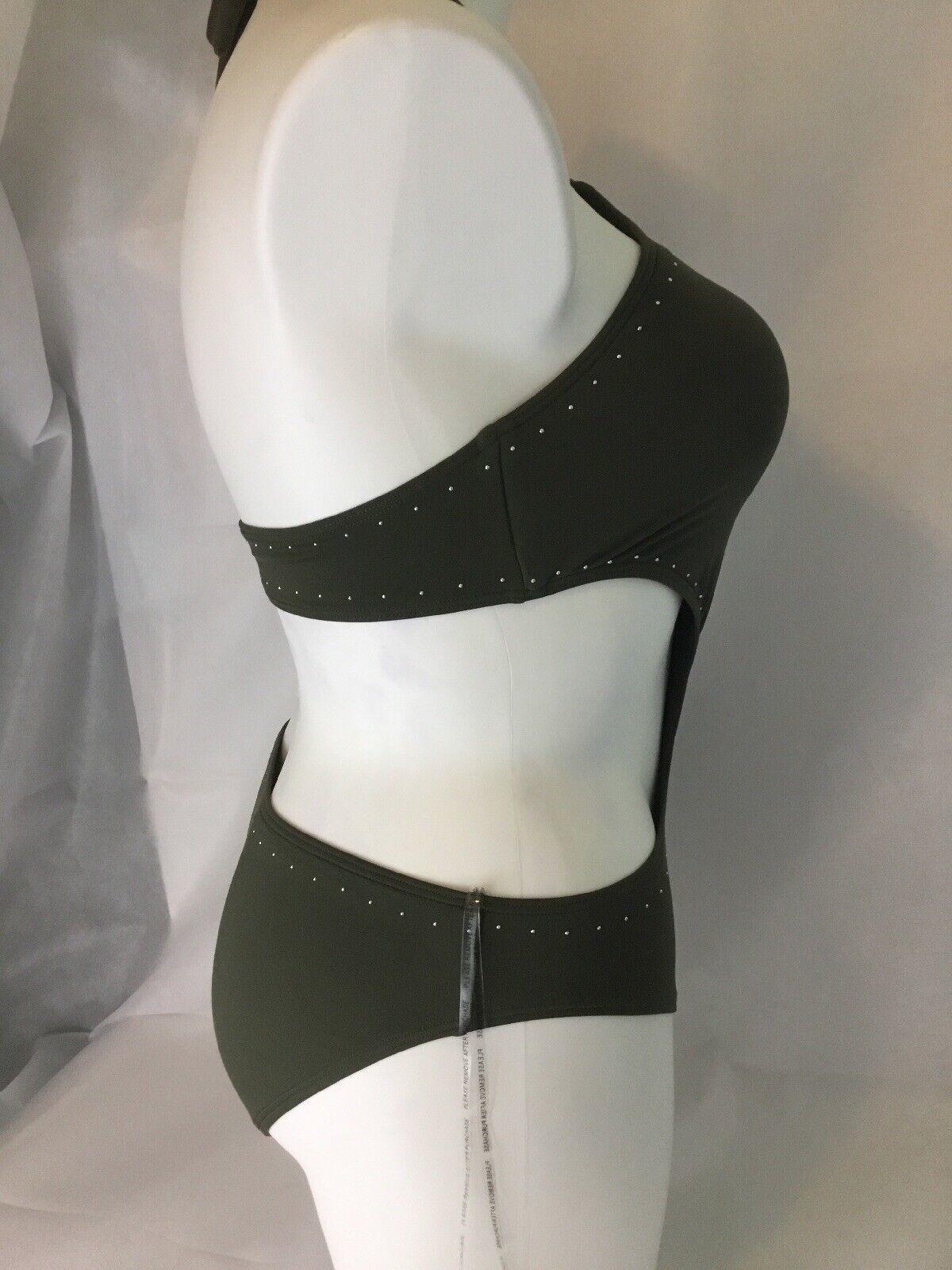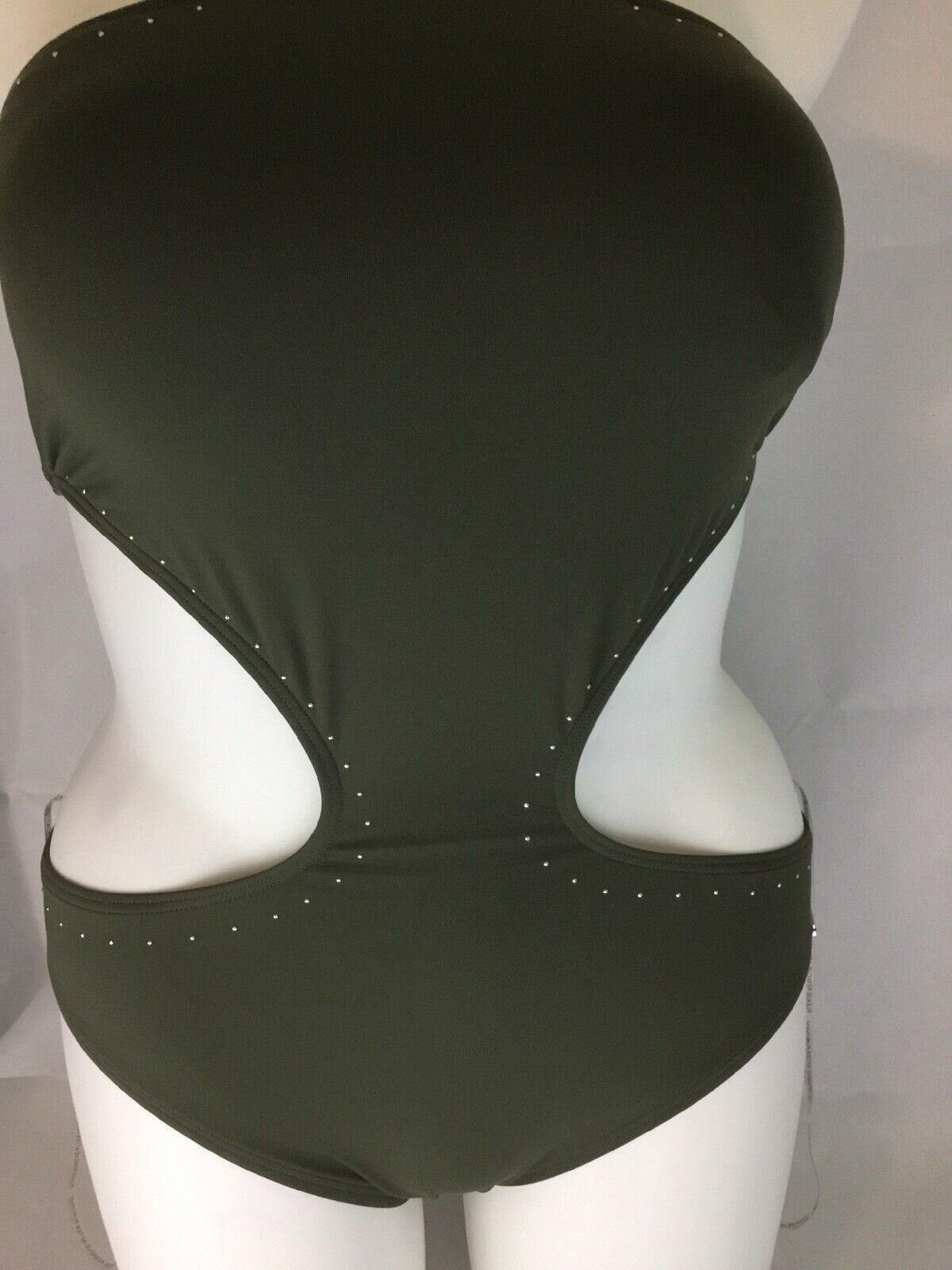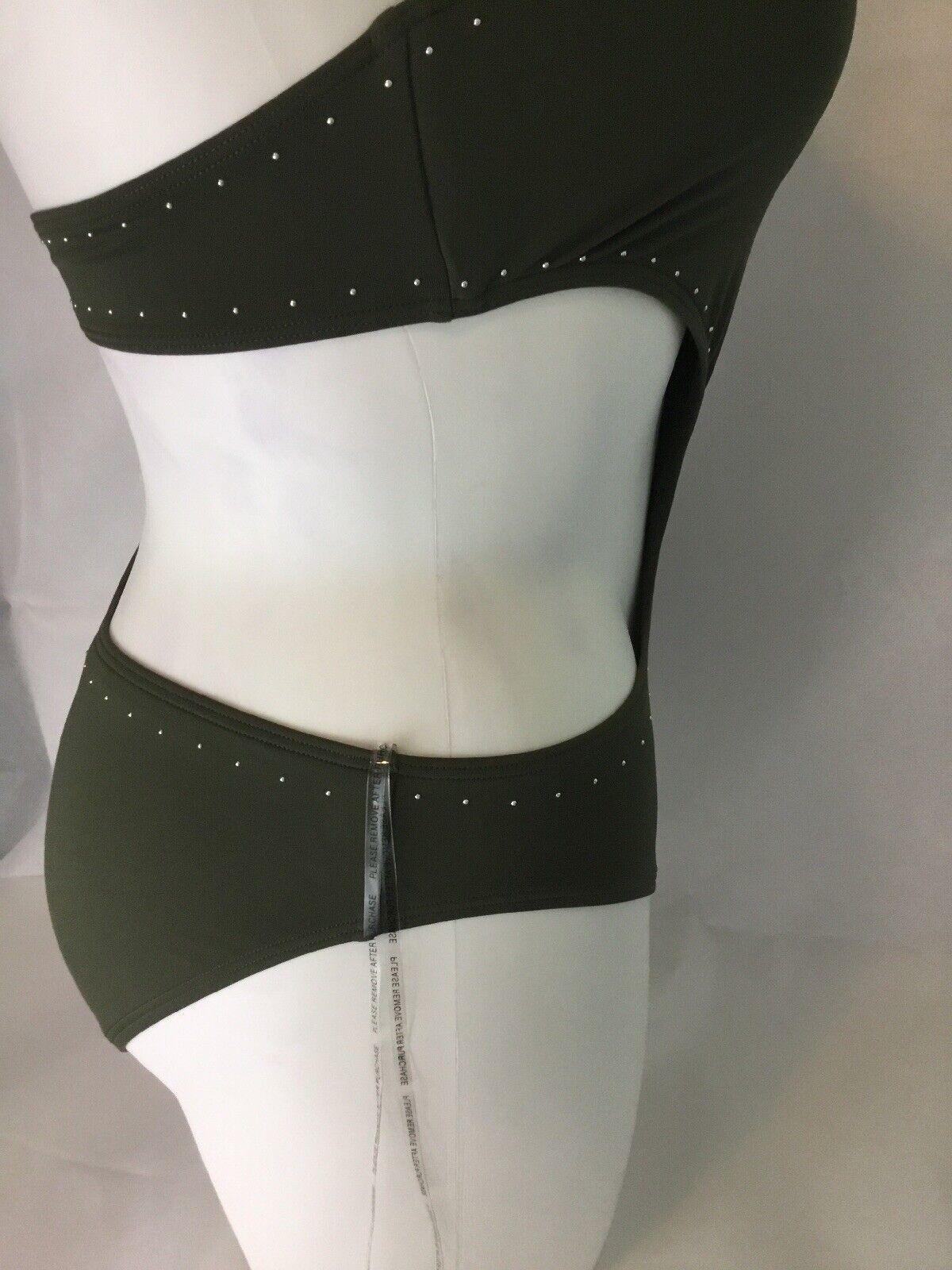 NWT Vince Camuto Swimsuit Studded Sz 14 Monokini Dark Sage Swimsuit One Piece