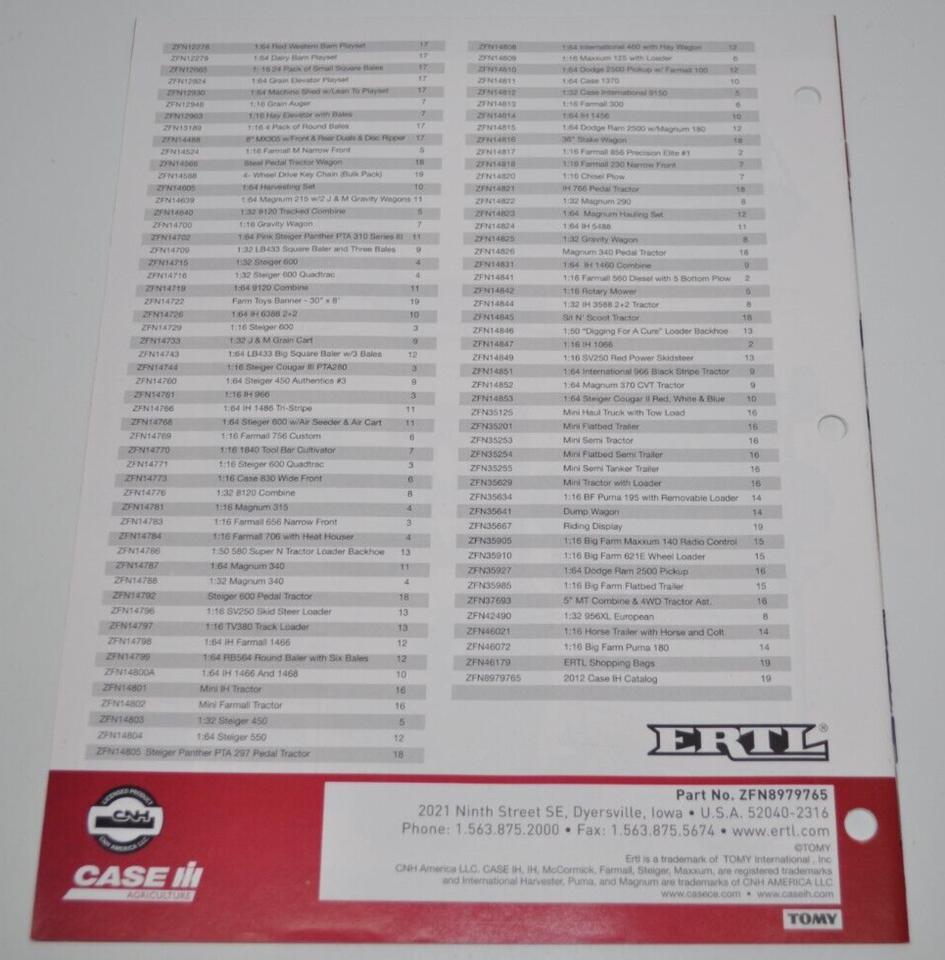 2012 ERTL TOYS & COLLECTIBLES CASE IH Tractor Brochure - Dealers Catalog