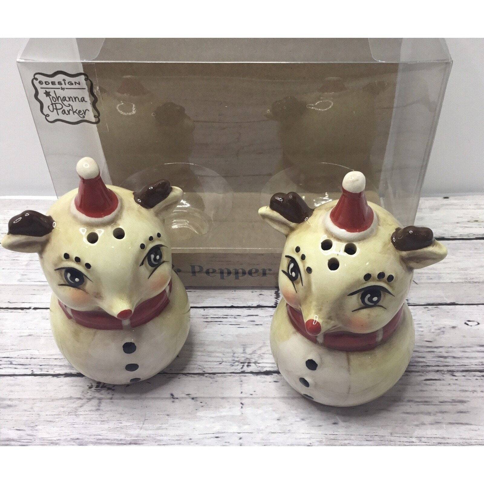 Salt Pepper Shakers Ceramic Johanna Parker Christmas REINDEER. New