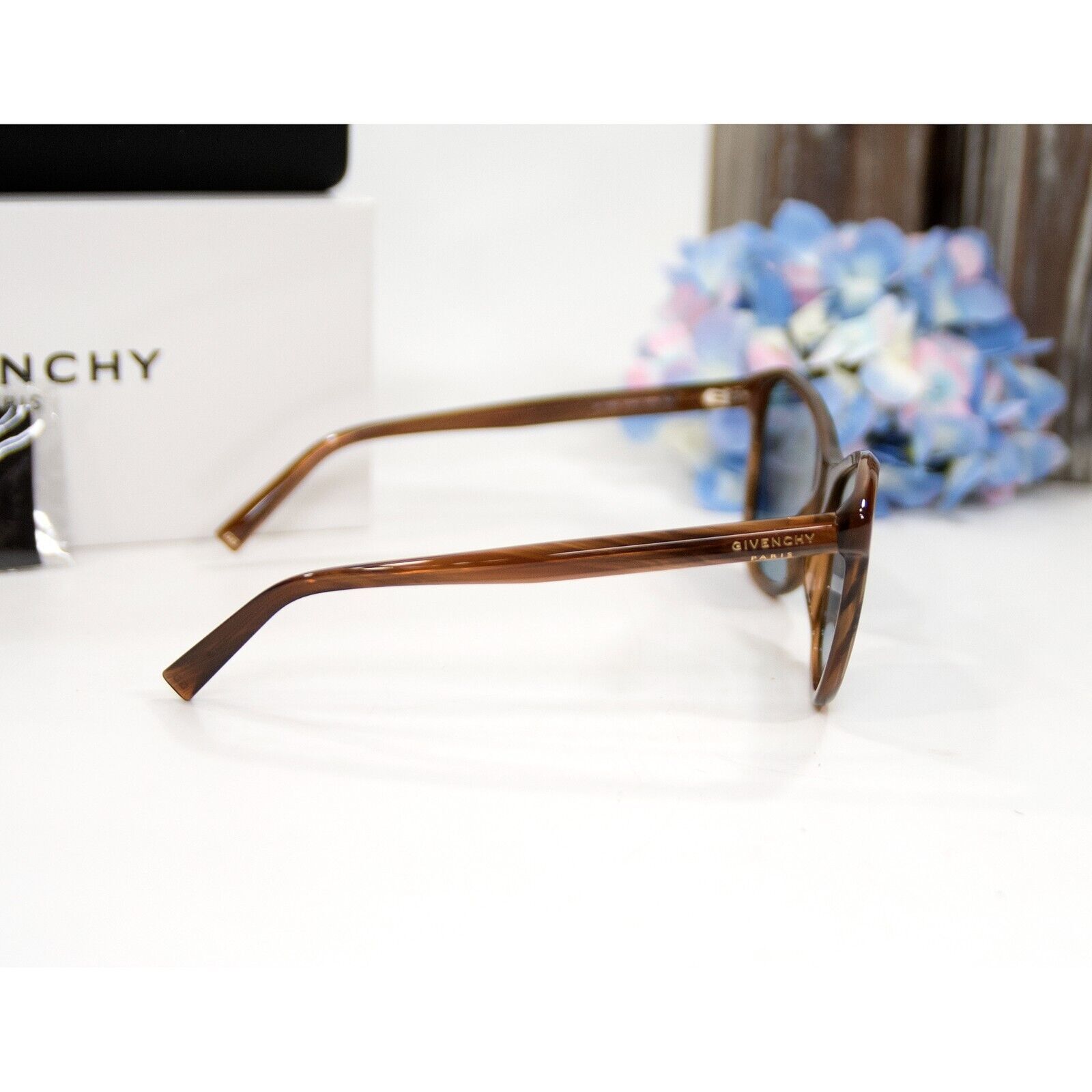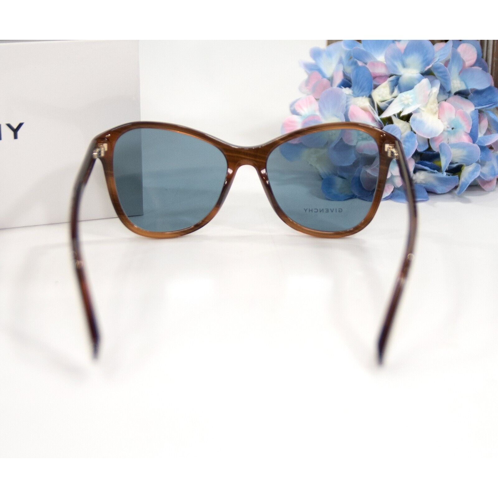 Givenchy GV7198 Brown Gold Oversize Cat Eye Acrylic Logo Sunglasses NWT Case