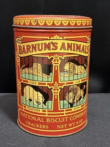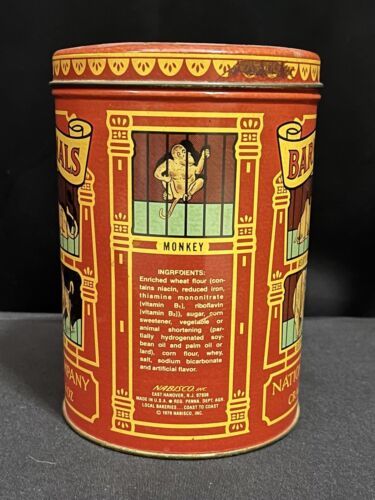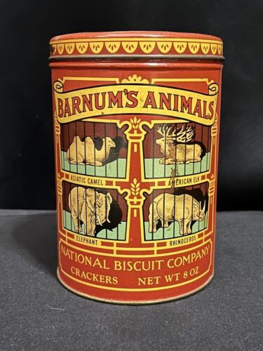 Vintage 1979 Barnum?s Animals collectible cookie tin by the National Biscuit Co. 8oz capacity. Normal wear. Very clean inside.
