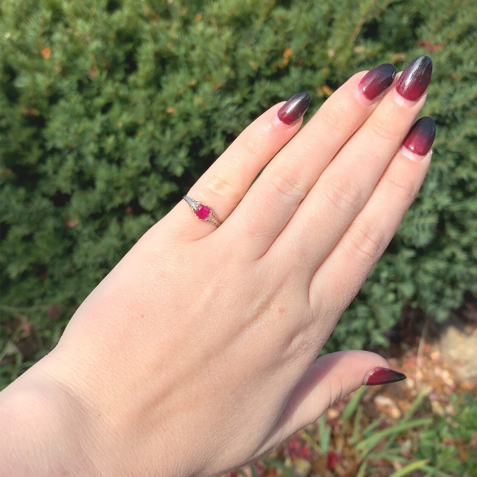 14k White Gold Child's or Pinky .67ct Ruby Filigree Ring Small Size 4.5 (#J6460)
