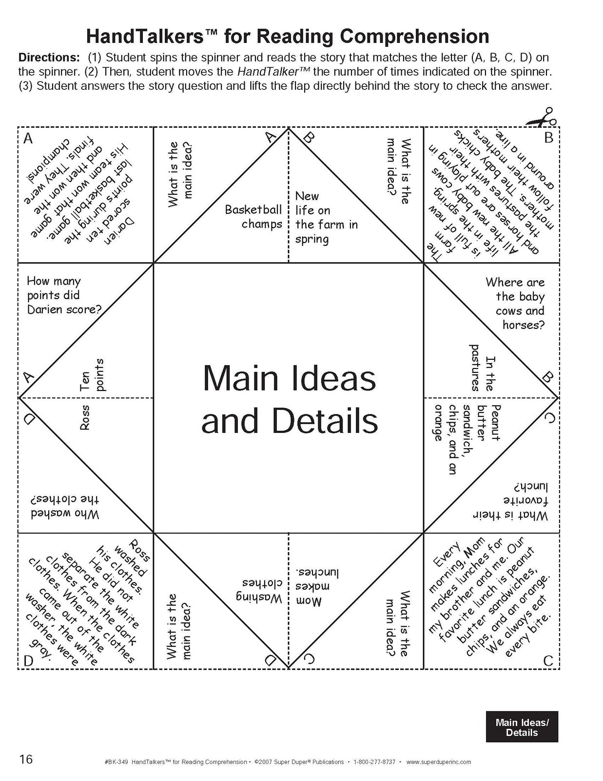 Super Duper Publications | HandTalkers for Reading Comprehension: Main Ideas, De