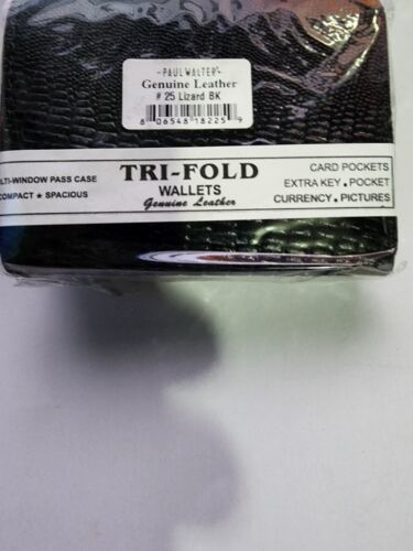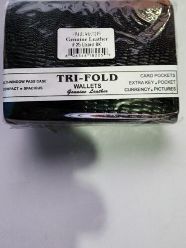 You are Buying a brand New And Factory Sealed Paul Walter Trifold Lizard Genuine Leather Wallet for Men with RFID Blocking Black.... 3.25" x 4.25" when closed and 9.25" x 4.25" when open this large men's wallet has 8-12 card slots that can comfortably fit 12 cards. It also includes a divided billfold to keep your money and receipts organized. Leather Lizard trifold Leather wallet features quality napa leather, 8 card slots and an ID window, divided billfold, and our secure RFID blocking lining to keep your personal and financial info safe.