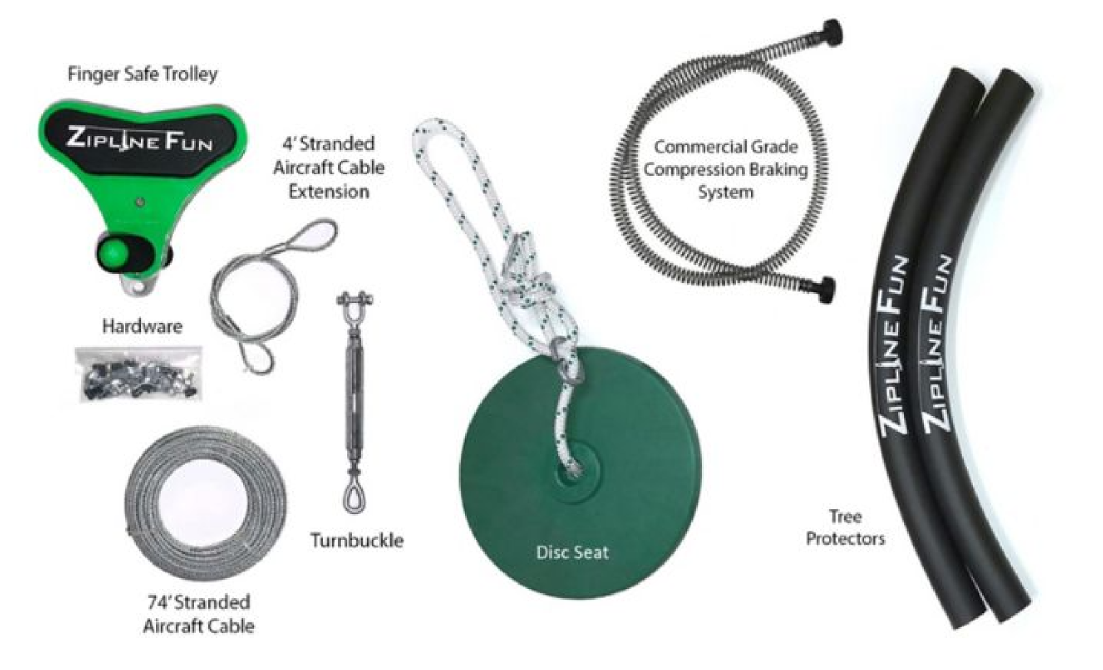 The Total Z70 features 74 ft. of galvanized aircraft cable (70 ft. of run distance), striking the perfect balance of fun and safety.