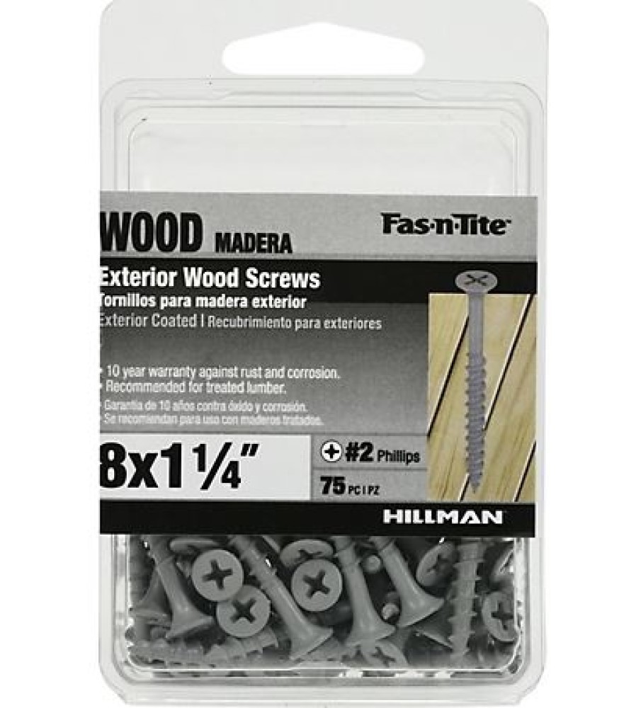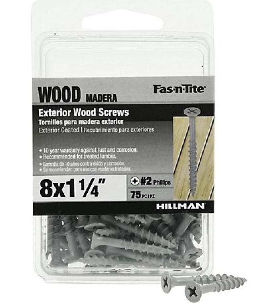 Hillman 42602 Fas-N-Tite Exterior Gray Coated Wood Screws #8 x 1-1/4", 75-Pack
