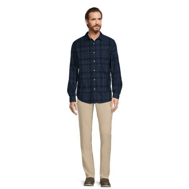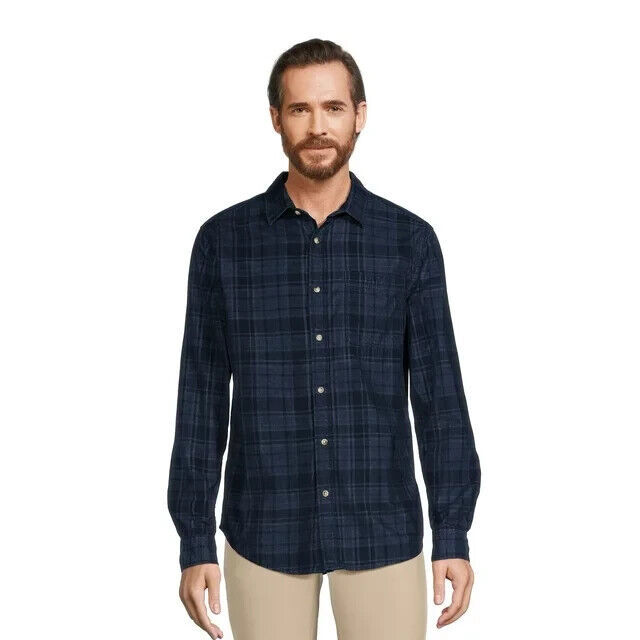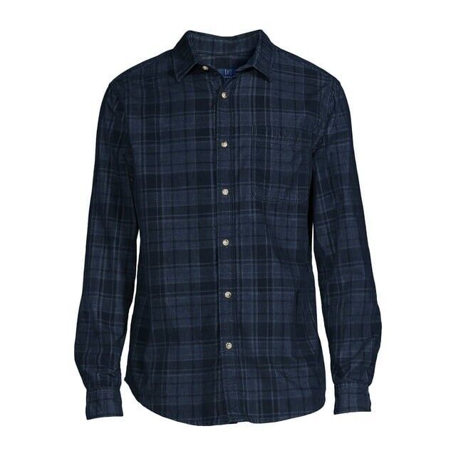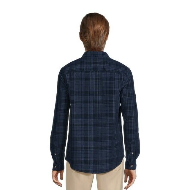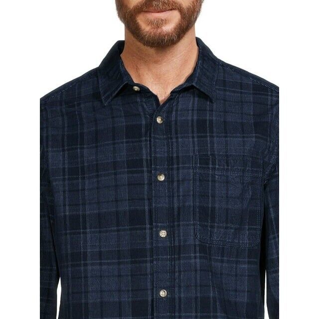 George Men's Corduroy Shirt with Long Sleeves, Dark Navy Plaid Size S(34-36)