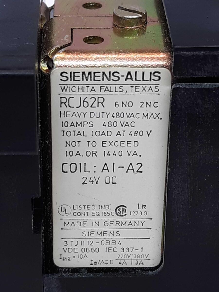 Siemens-Allis RCJ62R Contactor Block, 10A 480VAC 24VDC Coil