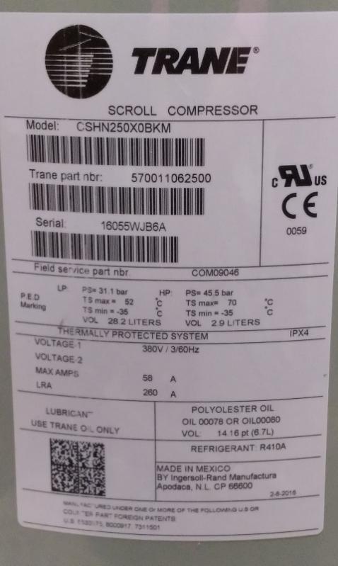 Trane CSHN250X0BKM Scroll Compressor, Volume 17Ton 28.2-29L