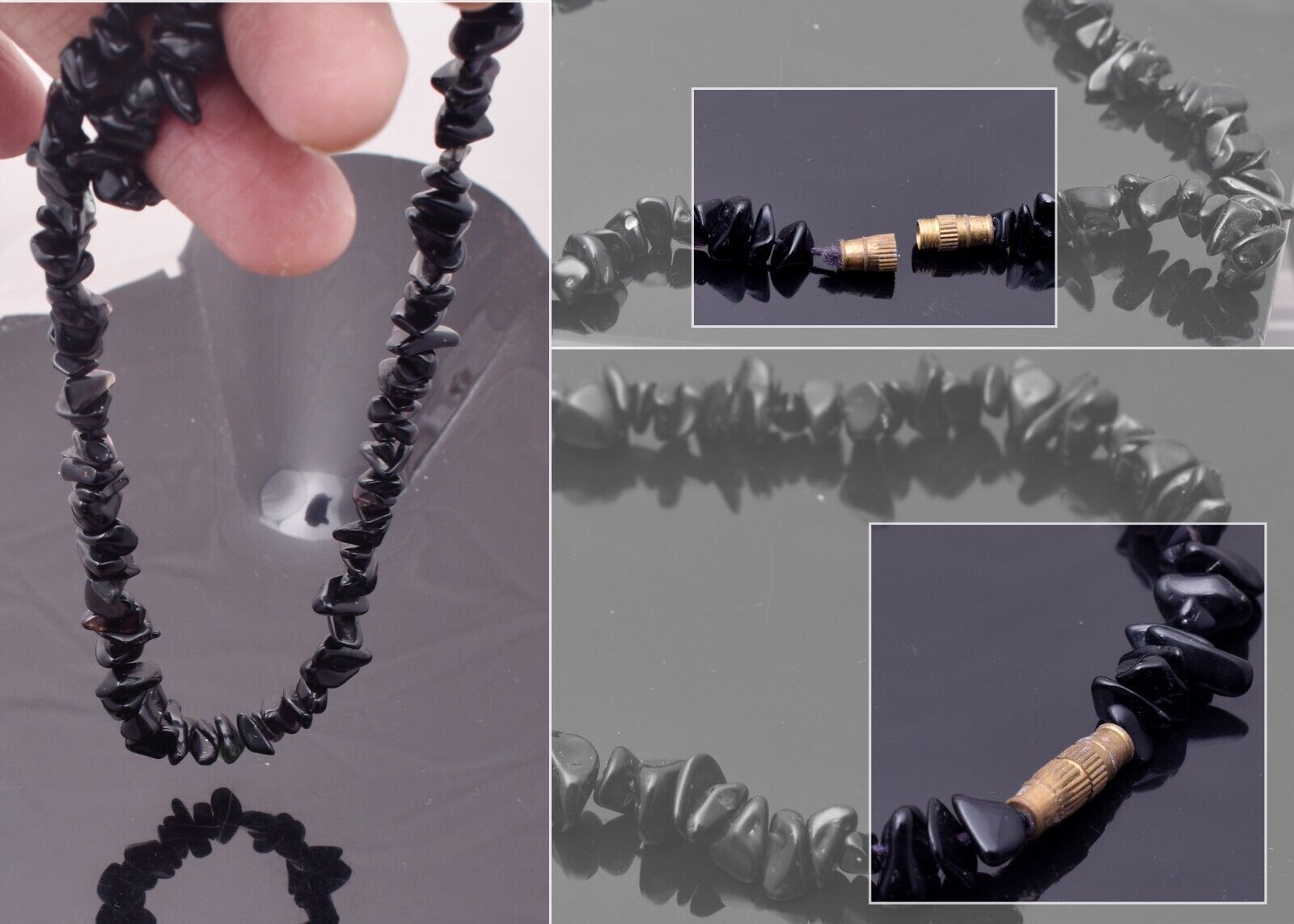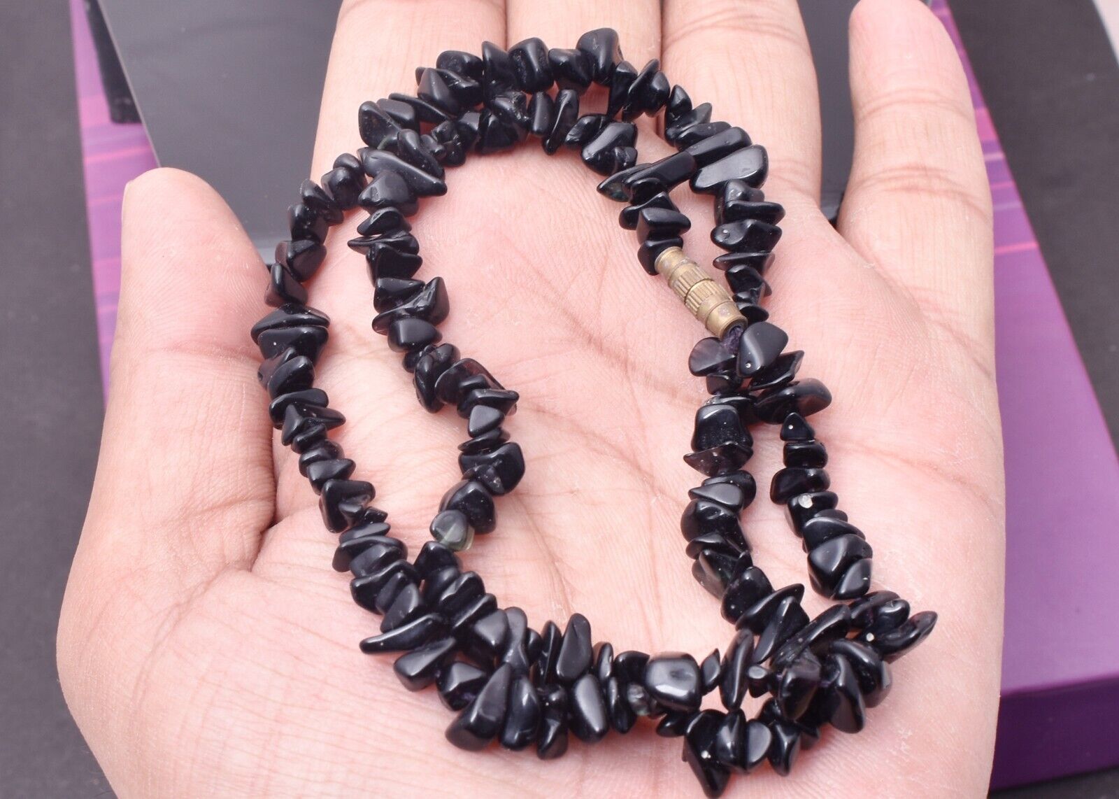 AAR Jewels Plaqué Argent Unisexe Onyx Noir Perlé Style Femme Joli Chaîne Chn