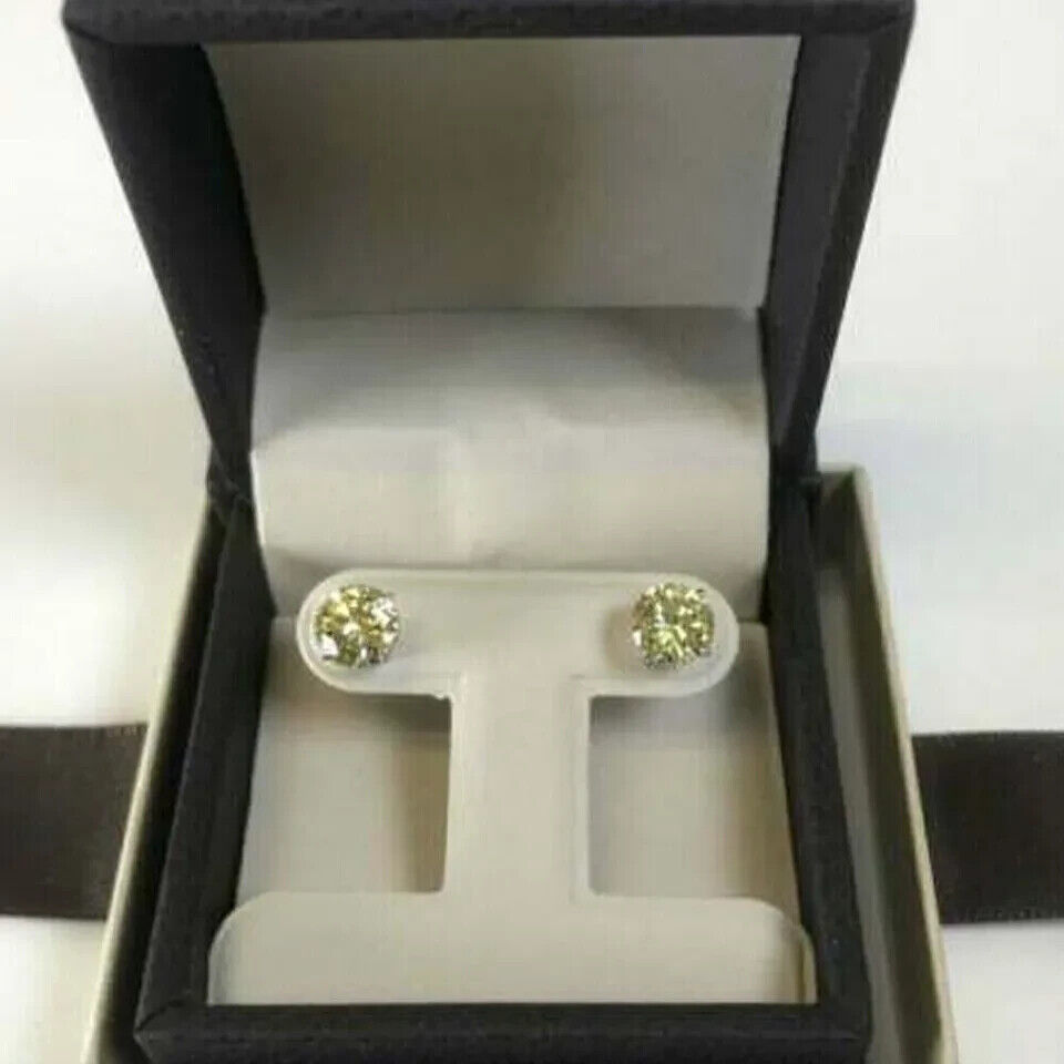2Ct Round Cut Simulated Canary Yellow Diamond 925 Sterling Silver Stud Earrings