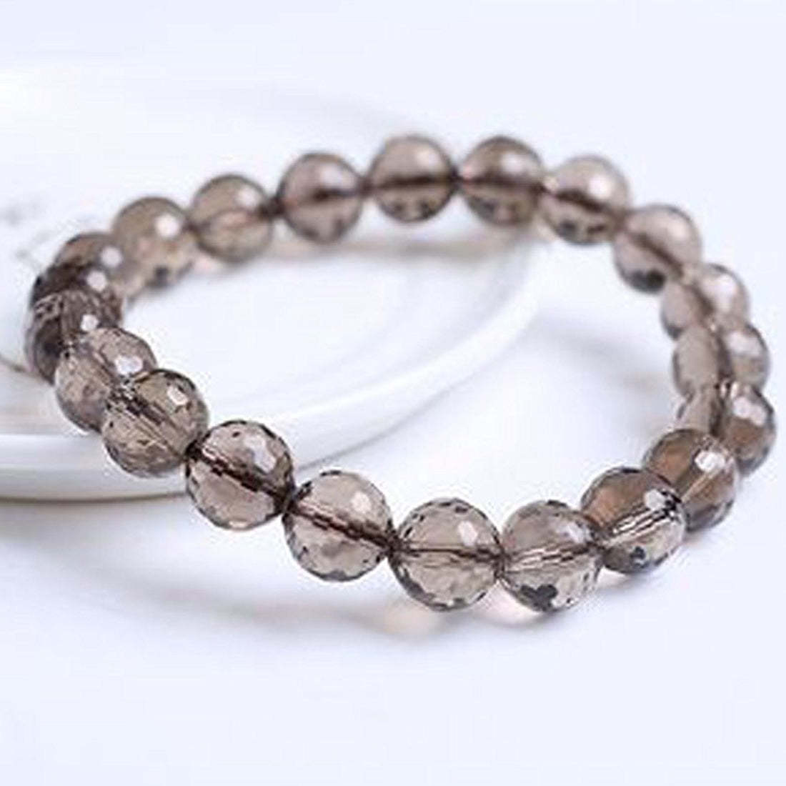 Smokey Quartz Diamond Cut 8mm Beads Bracelet