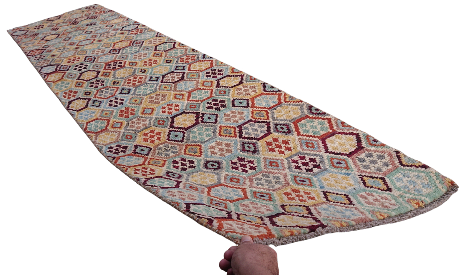 Exquisite 2x10 Anatolian Turkish Geometric Runner Rug